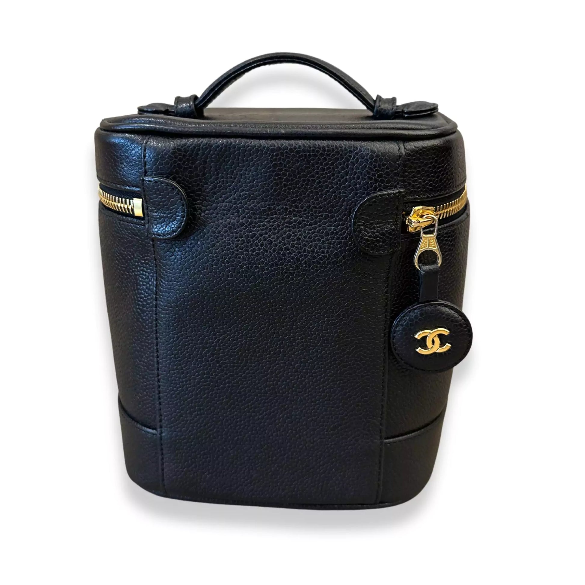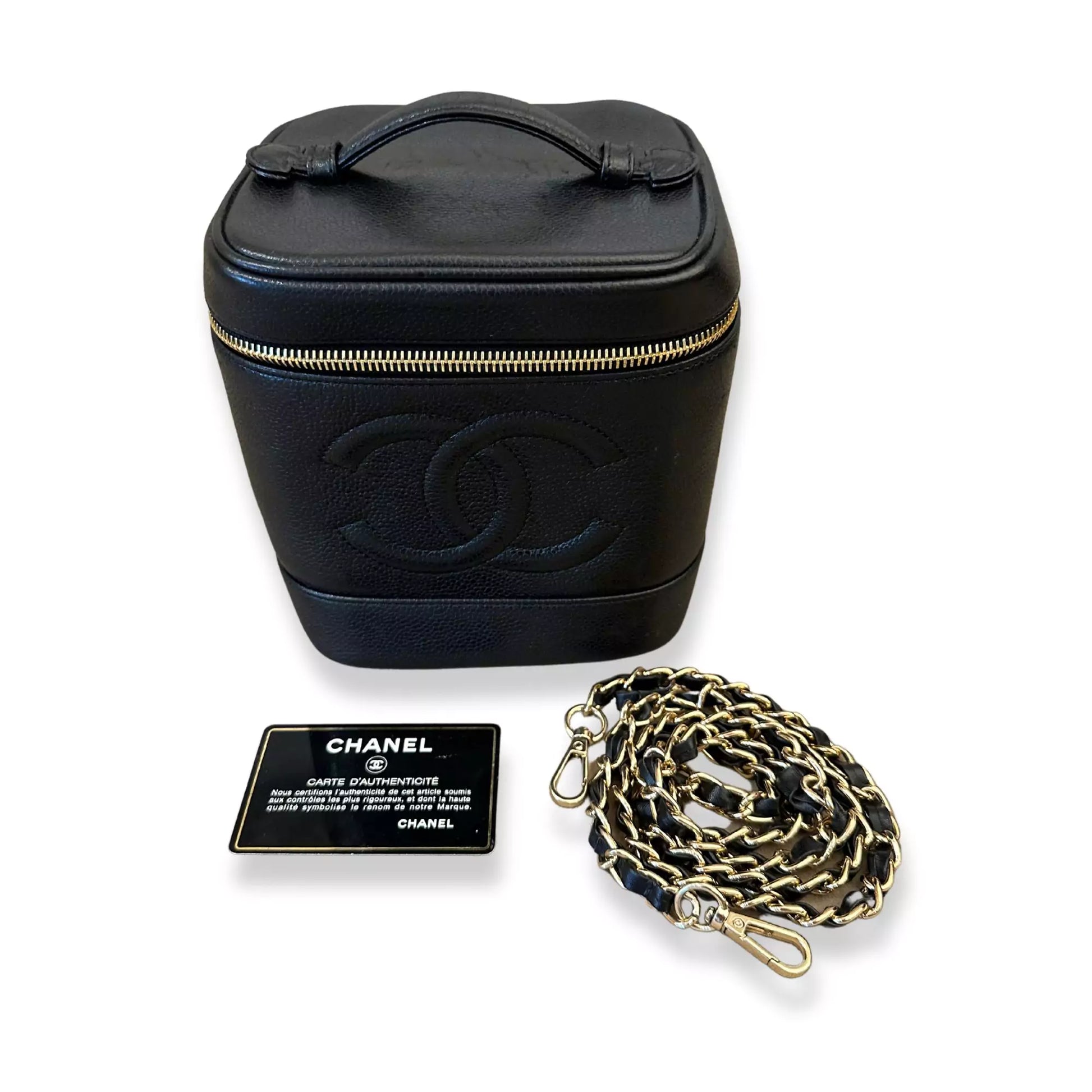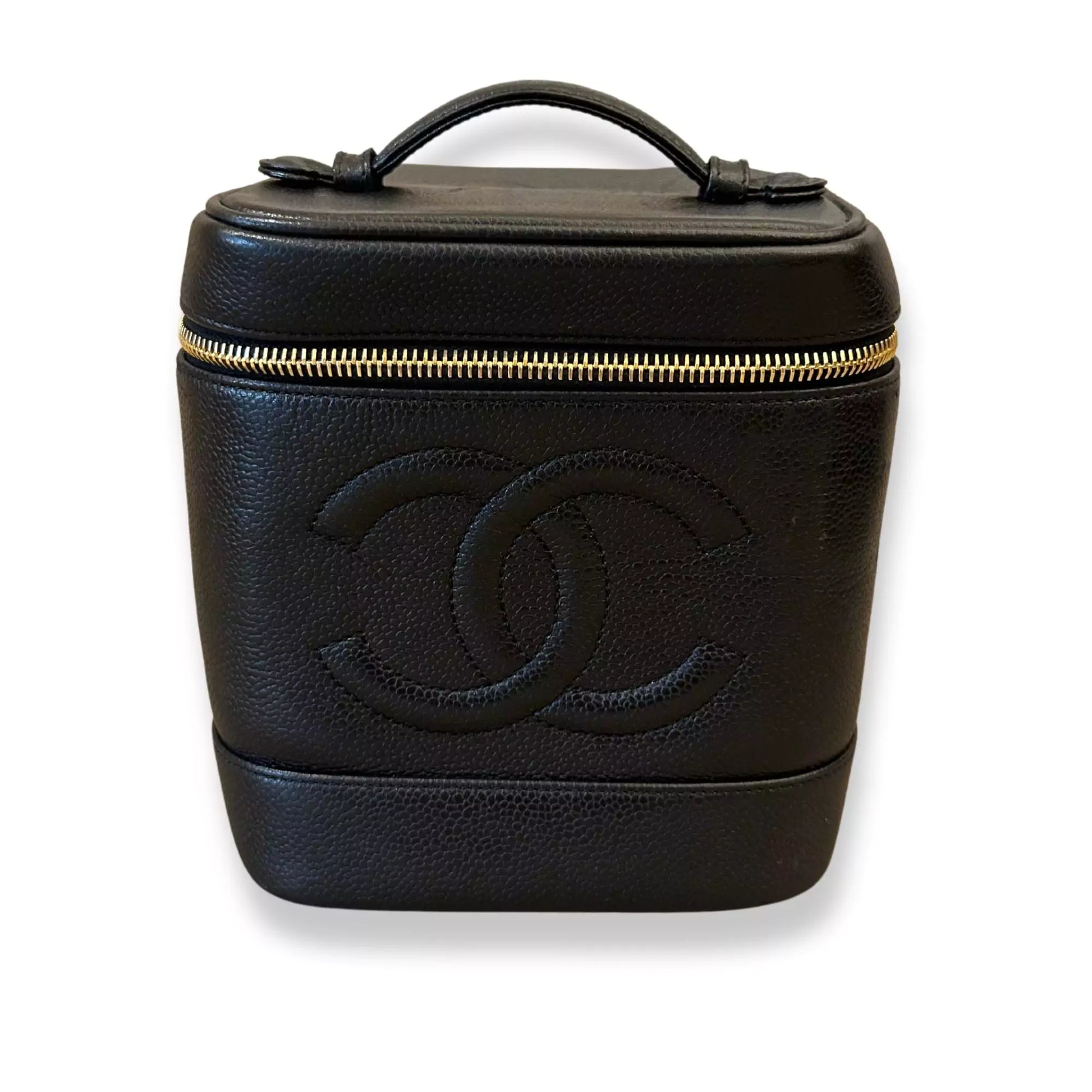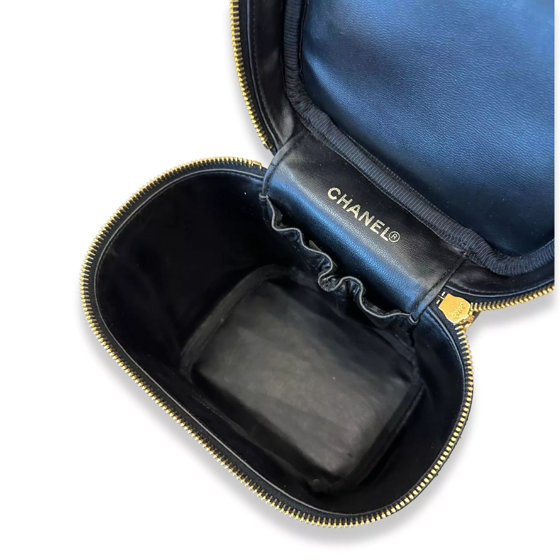 This Pre-loved Chanel Black Leather Top Handle Vanity Vintage Bag from the 2000s with Chanel classic lambskin leather is in a Very Good condition.