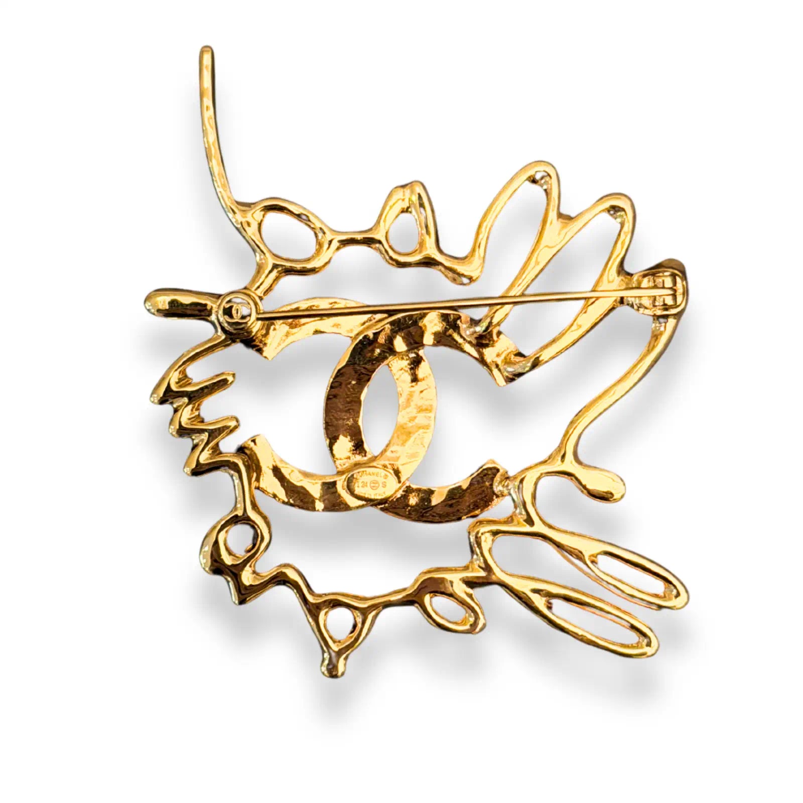 Chanel gold-tone jewelry Brooch adorned with crystal embellishments, bold and sculptural design inspired by the Maison’s iconic codes from the SS 2024 collection.