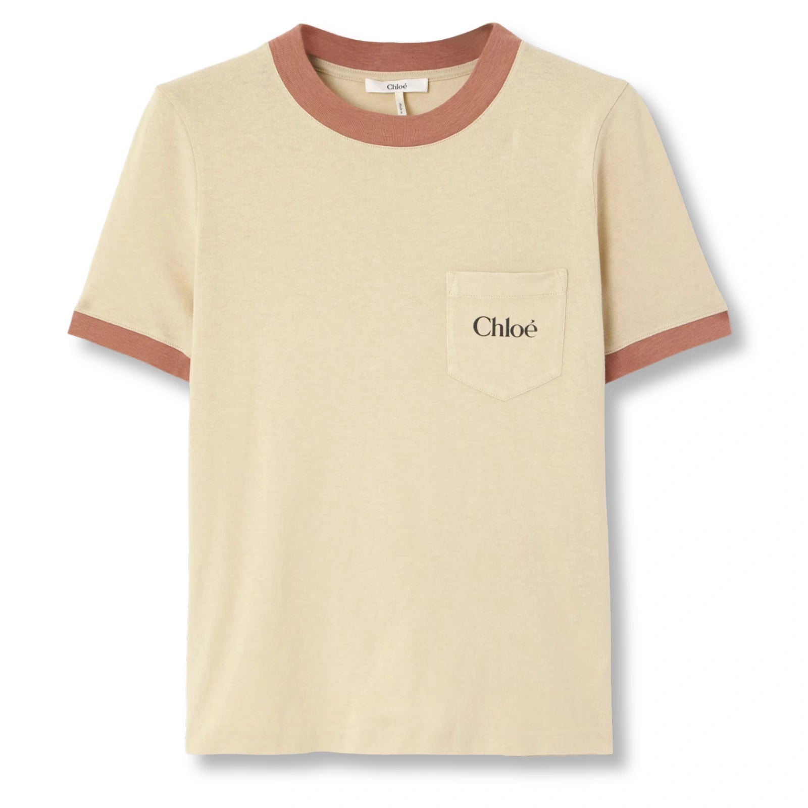 Pre-loved Chloé Printed cotton-jersey T-shirt. Chloé's T-shirt is reminiscent of vintage athletic styles. Made from cotton-jersey, it's printed with the logo at the chest patch pocket and has contrasting trims highlighting the classic crewneck and sleeves.
