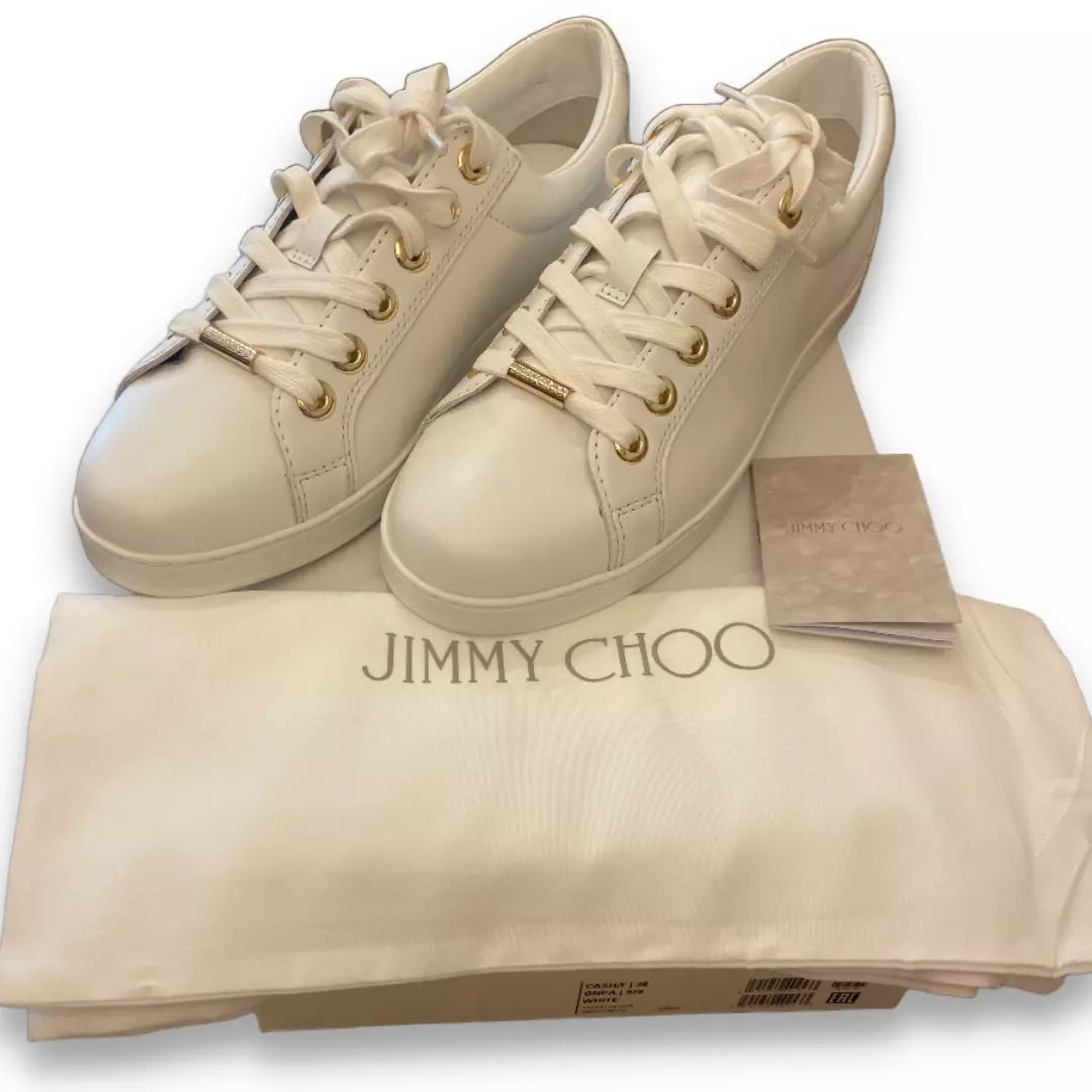 JIMMY CHOO WHITE CALF TRAINERS W/STARS