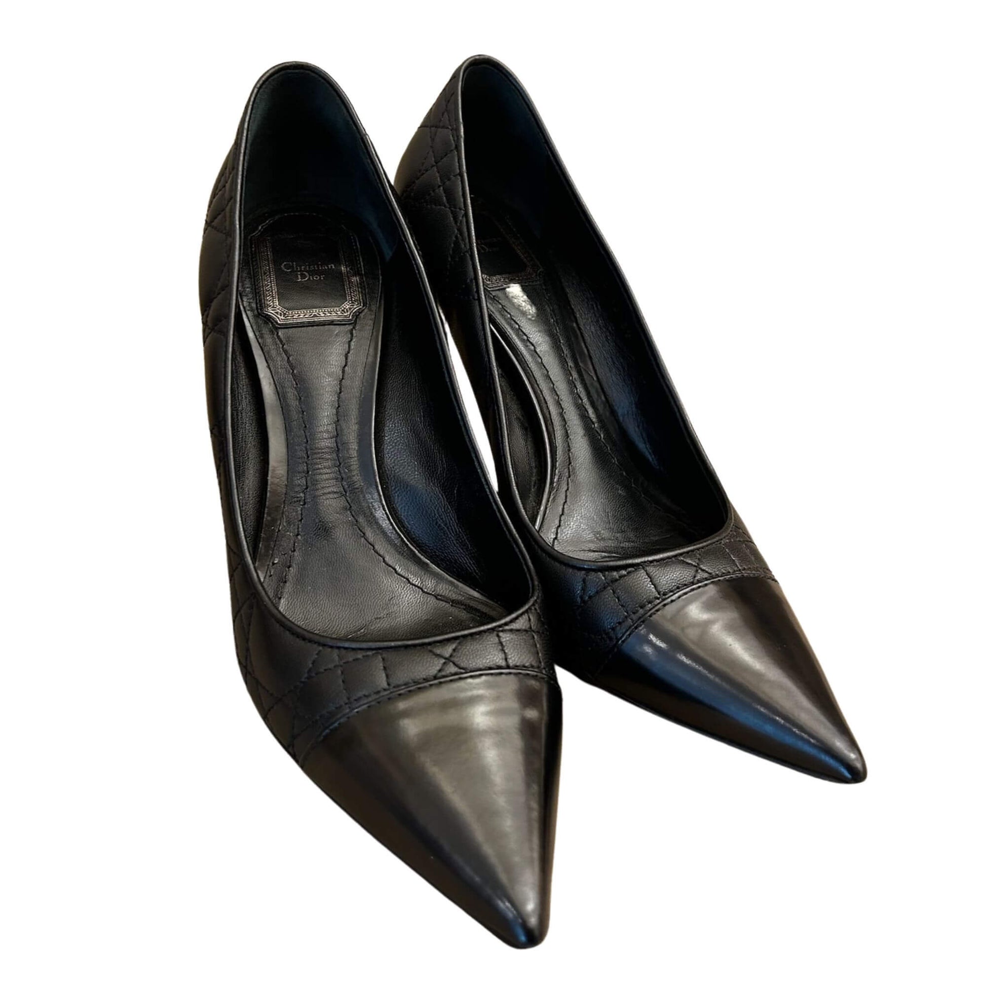These PRE-LOVED Dior Shoes are made out of black leather with black lining. The pointed toe is made out of black shiny leather.