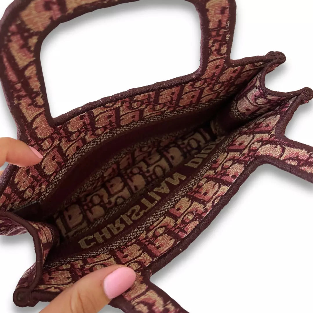 DIOR BURGUNDY CANVAS LEATHER BOOK TOTE MINI