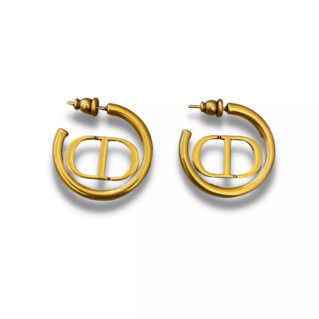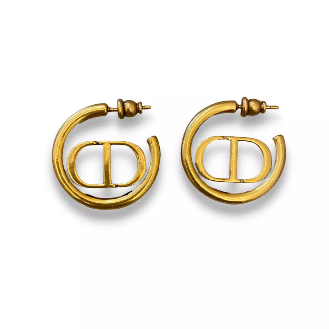 These Pre-loved Dior CD 30 Montaigne Antique Gold Finish Metal Earrings, with antique gold finish metal and sud closure are in Very Good condition.