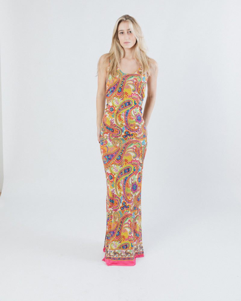 DOLCE & GABBANA MULTICOLOR PAISLEY PRINT LONG DRESS