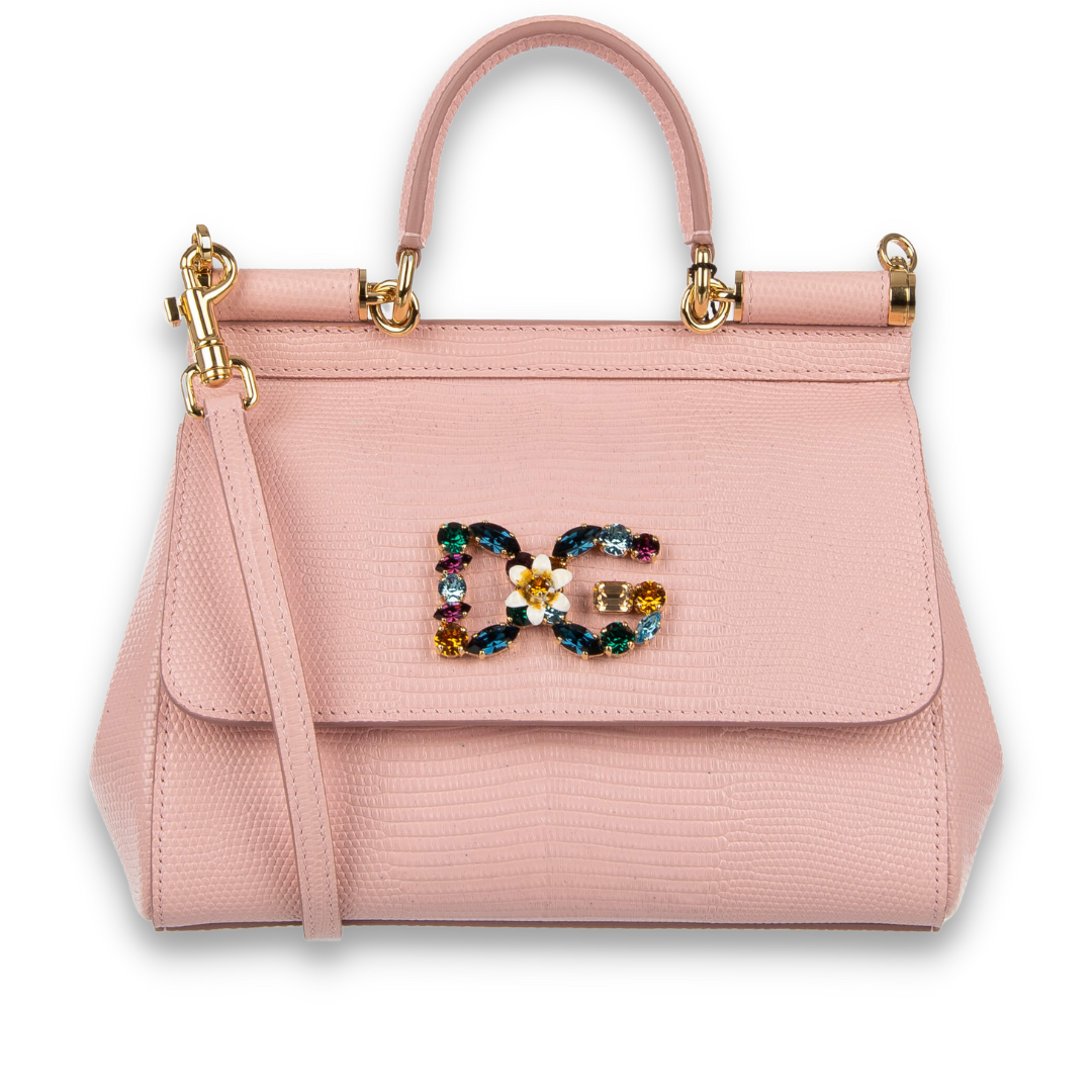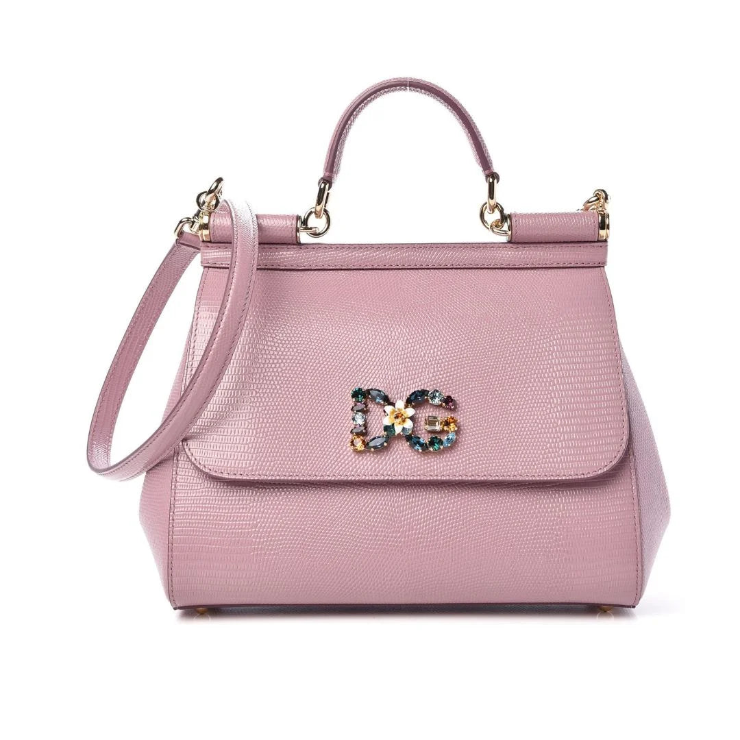 Completely new DOLCE & GABBANA Stampa Iguana Crystal Medium Miss Sicily Satchel Pink Bag. It comes with a long cross-body removable chain and a complimentary mirror inside the bag.