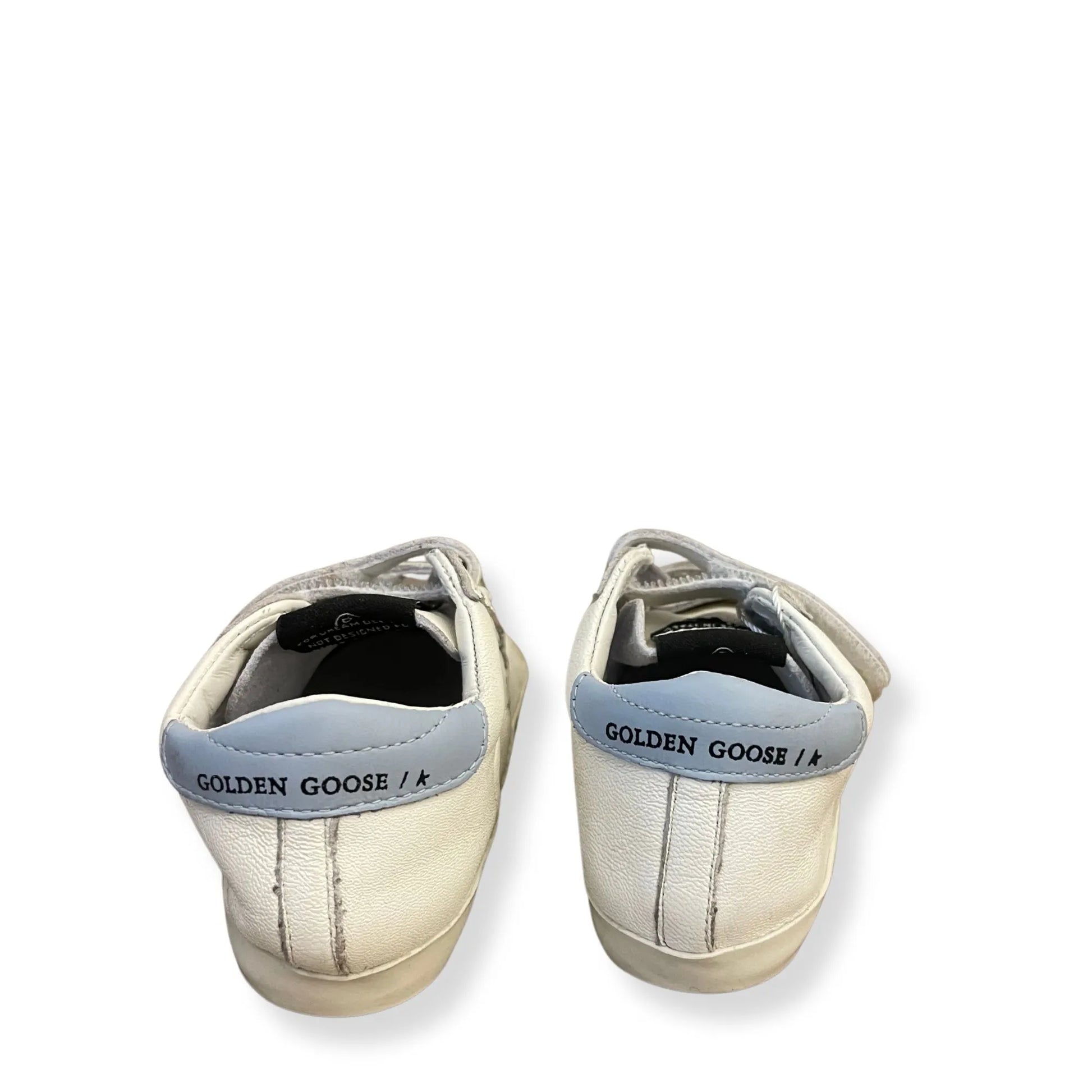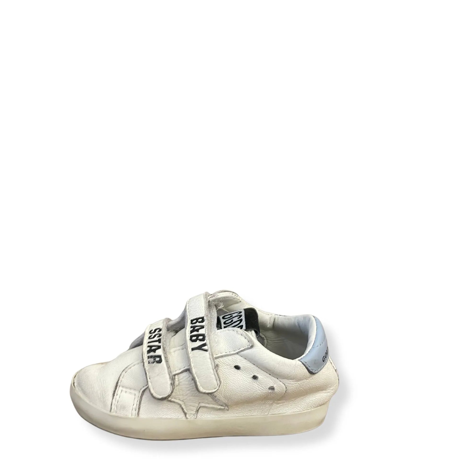 Exclusive white Superstar sneakers with an iconic star signed Golden Goose, from the new Spring Summer 19 Collection - Footwear line for baby boys and girls. Golden Goose, exclusive Italian brand leader in the artisan footwear sector, offers high quality footwear with a modern and attractive design. The unmistakable star and the characteristic used effect are the result of an accurate manufacturing process, which combines innovation and modernity with the typical Made in Italy tradition, guaranteeing a unique style and impeccable quality. The Superstar sneakers by Golden Goose are available in the unisex New Born size, from number 16 to 18.