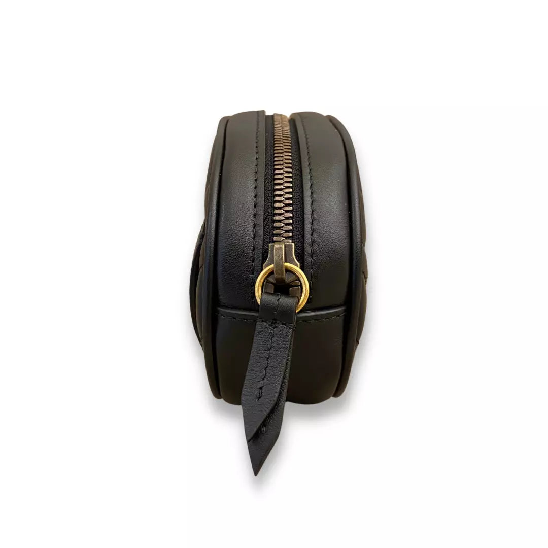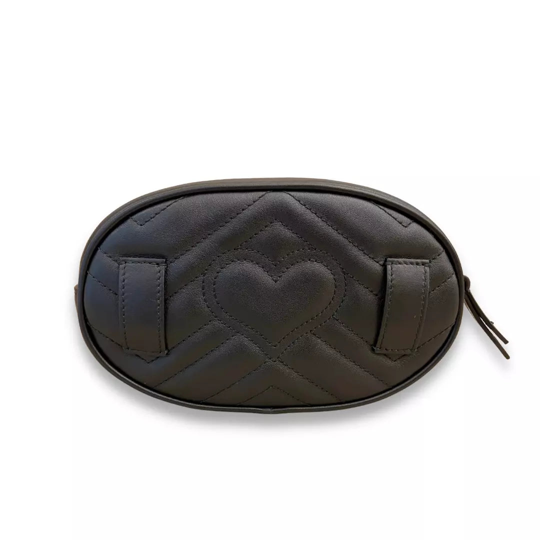 Completely New GG Gucci Black Matelassé Leather GG Marmont Belt Bag, crafted from matelassé chevron leather and adorned with aged gold-toned hardware. This bag includes an adjustable 85 cm belt and is in pristine condition, never having been used. A sophisticated and versatile accessory ready to elevate your style.