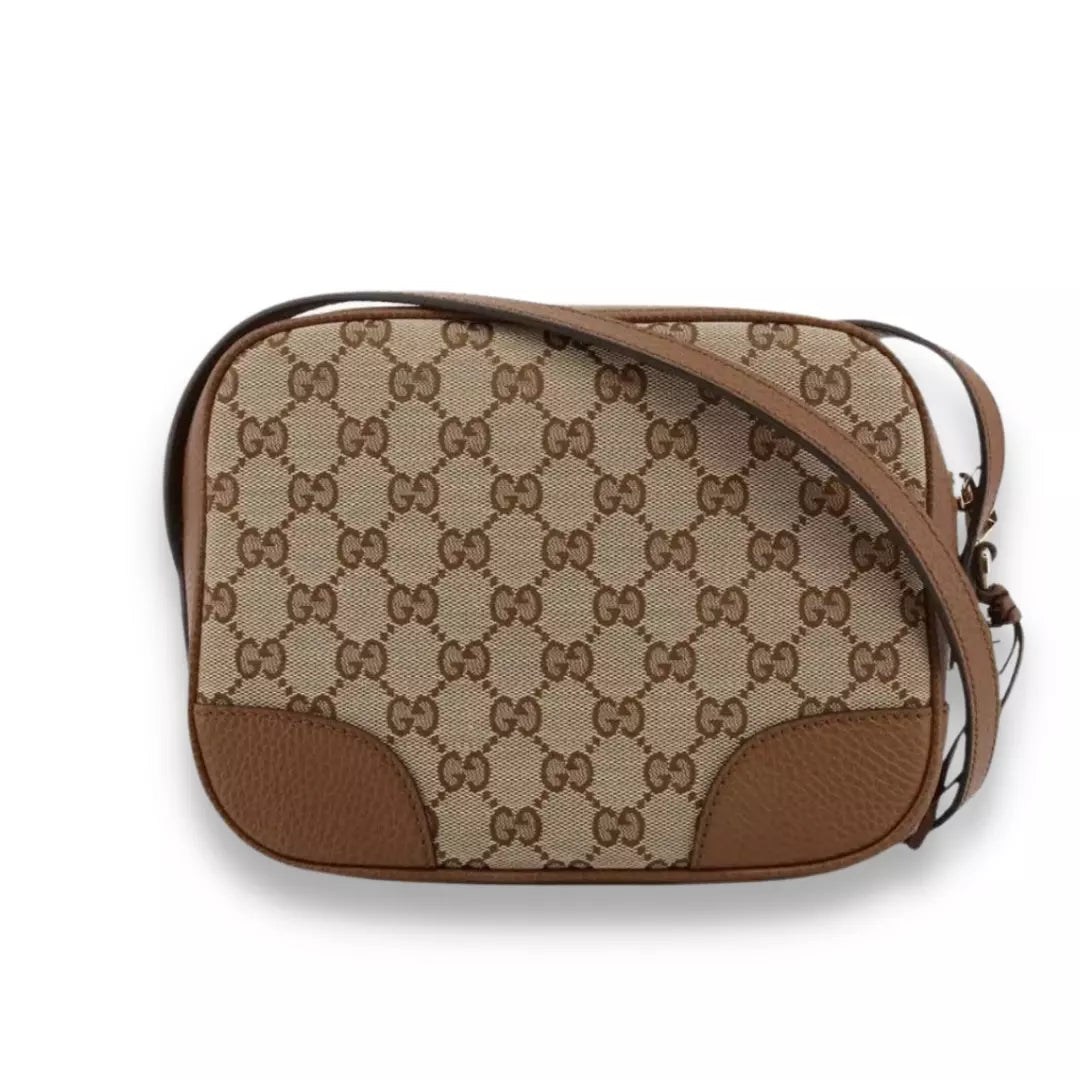 Completely new Gucci Brown GG Bree crossbody bag, made combining monogram canvas and leather.