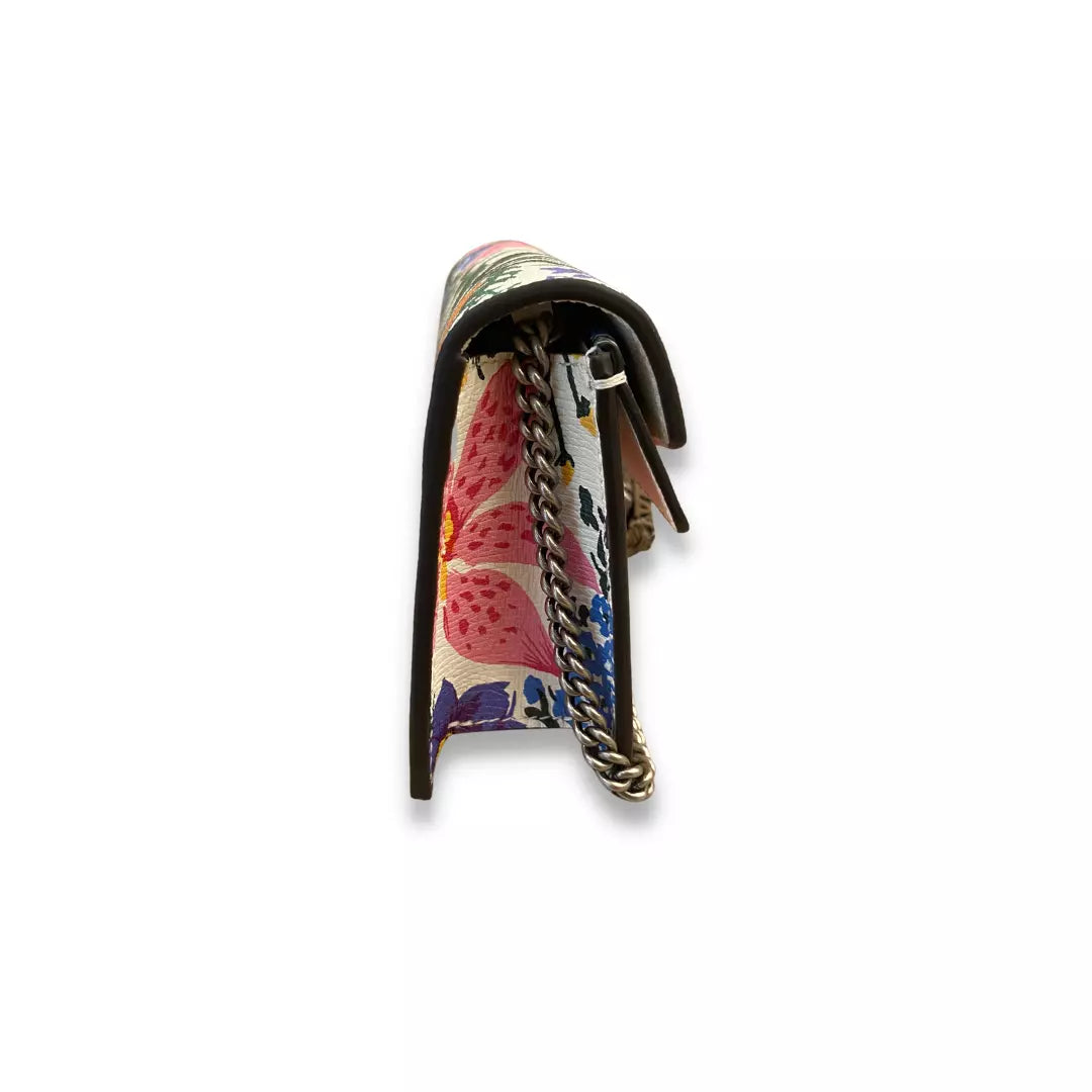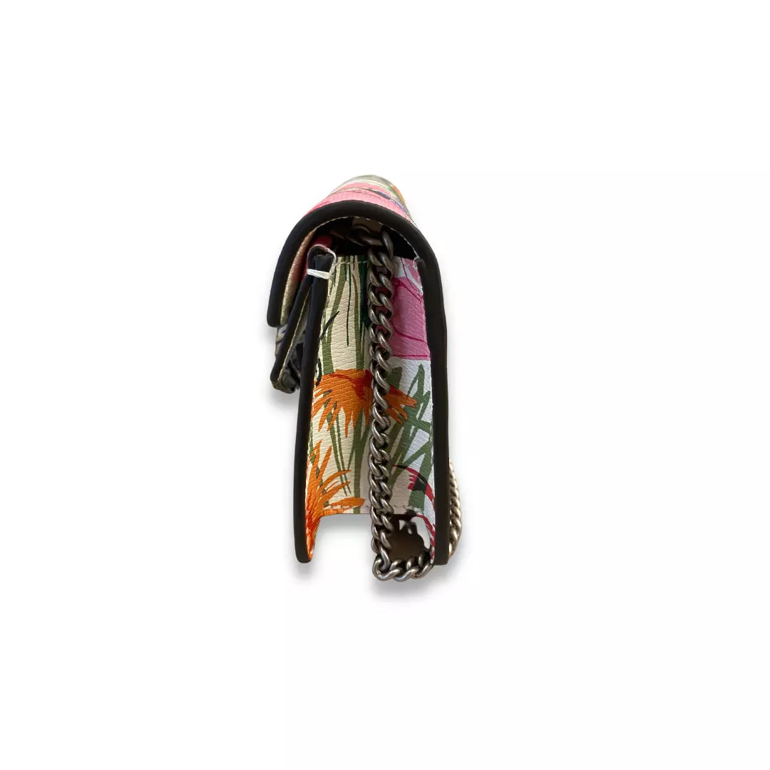 Gucci Monogram Canva Mini Dionysus Bag, with Double G monogram and palladium hardware. It comes with a key ring that can be used to attach this bag to a separate larger bag.