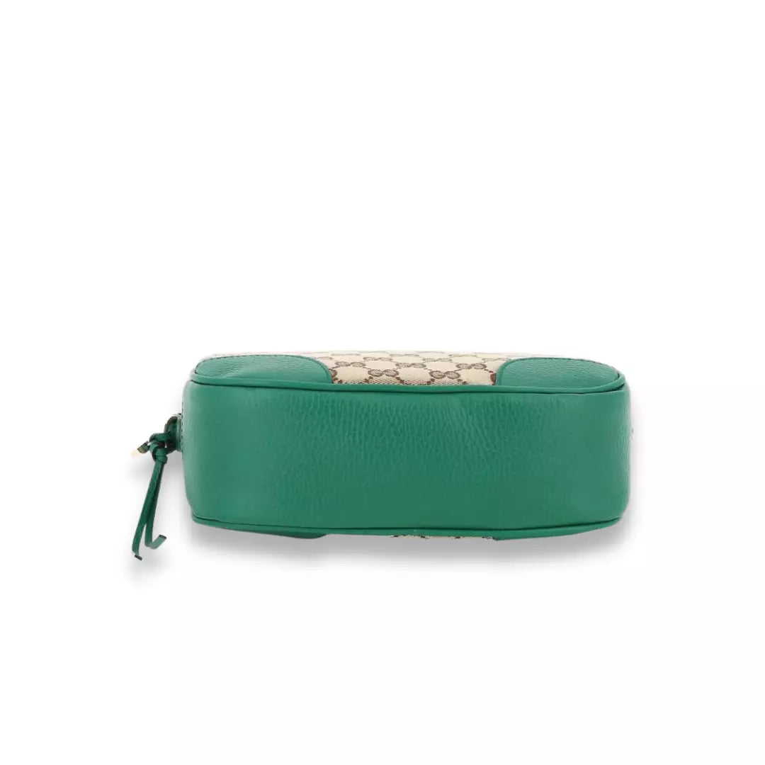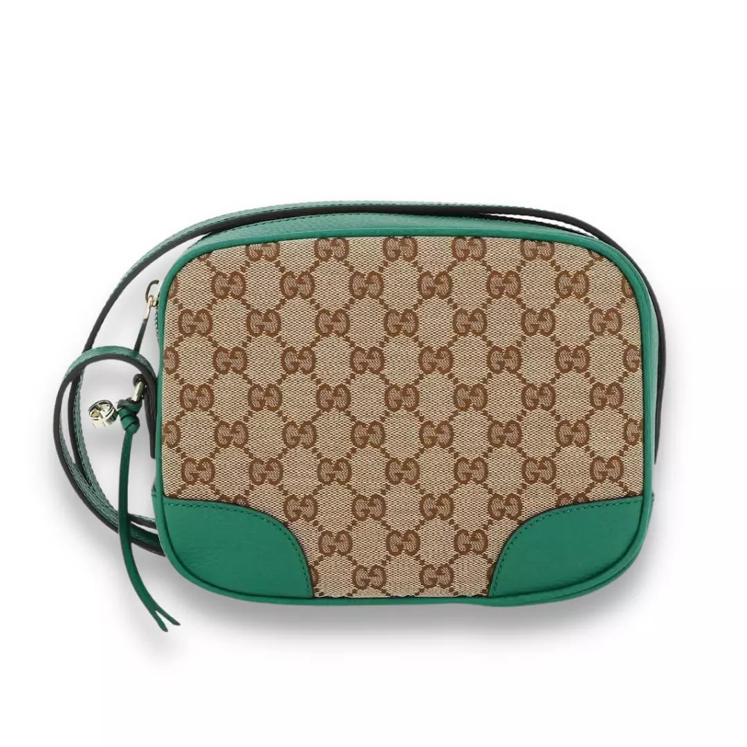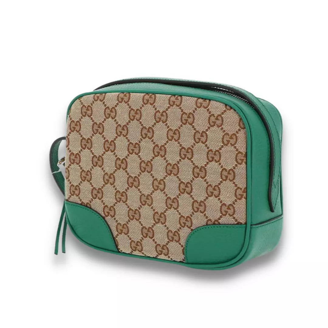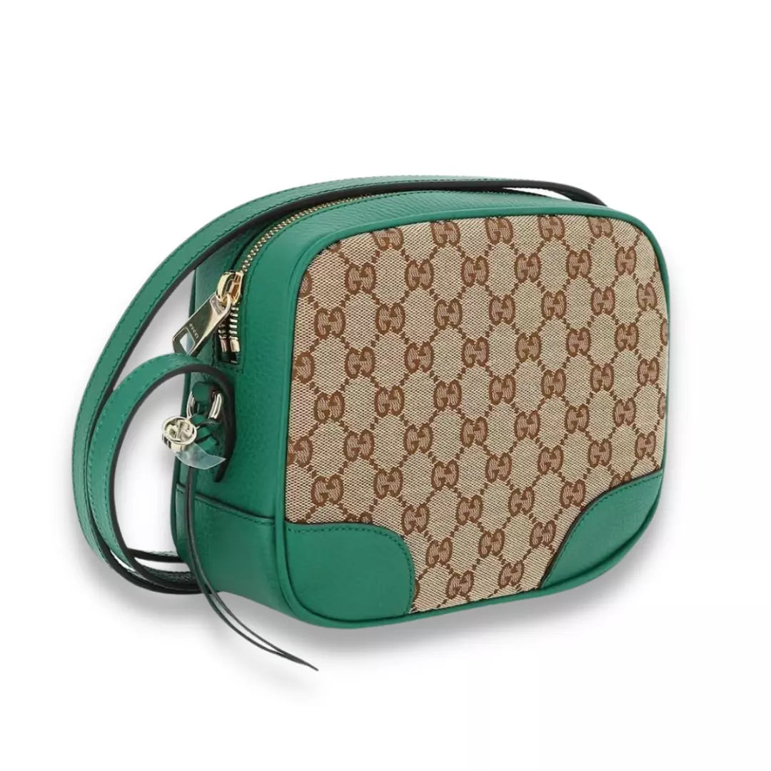 Completely new Gucci Green GG Bree crossbody bag made combining monogram canvas and leather.