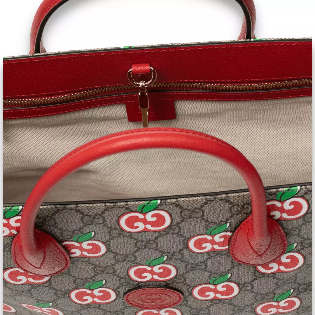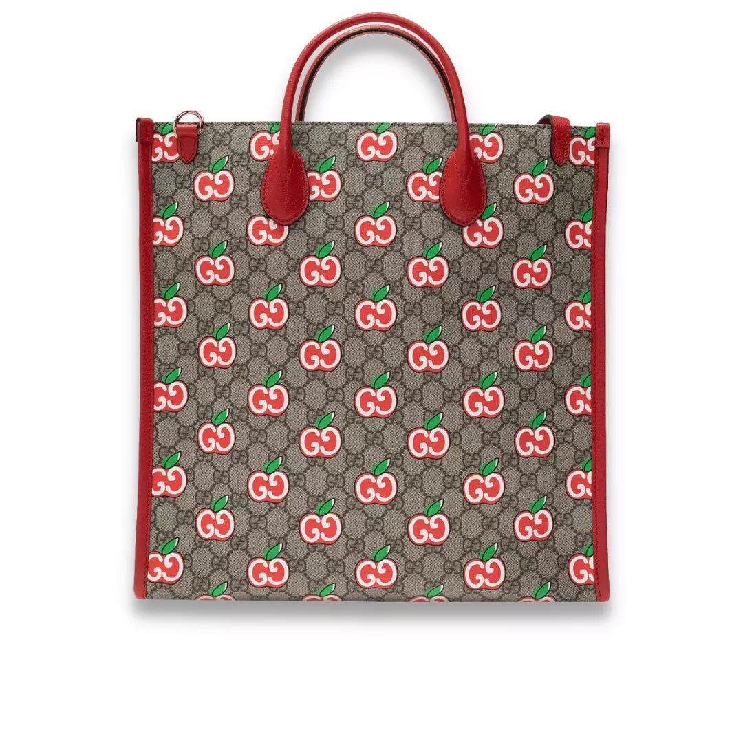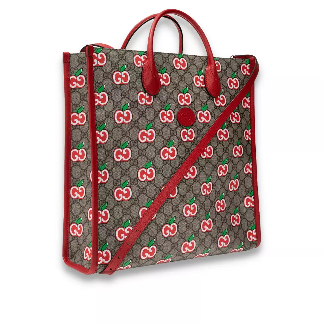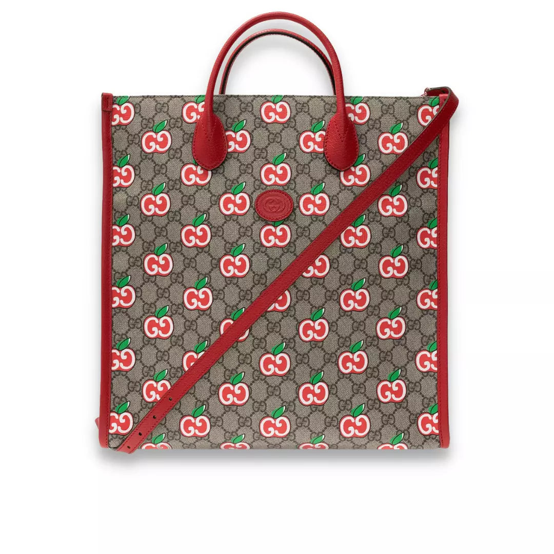 Completely new limited edition Gucci GG Supreme Canvas Apple Tote Bag that features a beautiful GG apple logo printed over GG Supreme canvas.
