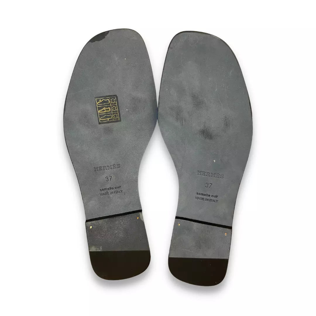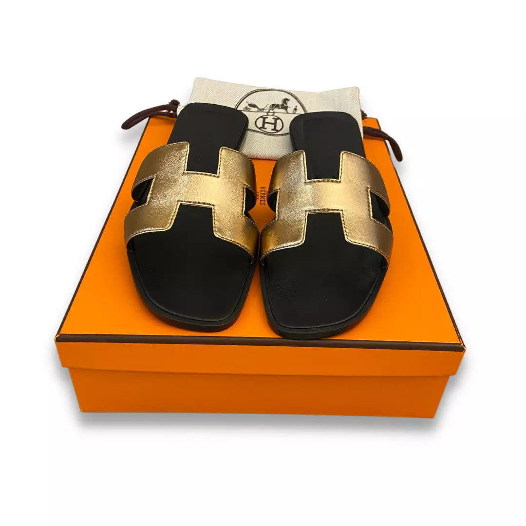 HERMÈS BLACK & GOLD ORAN SANDALS SHOES