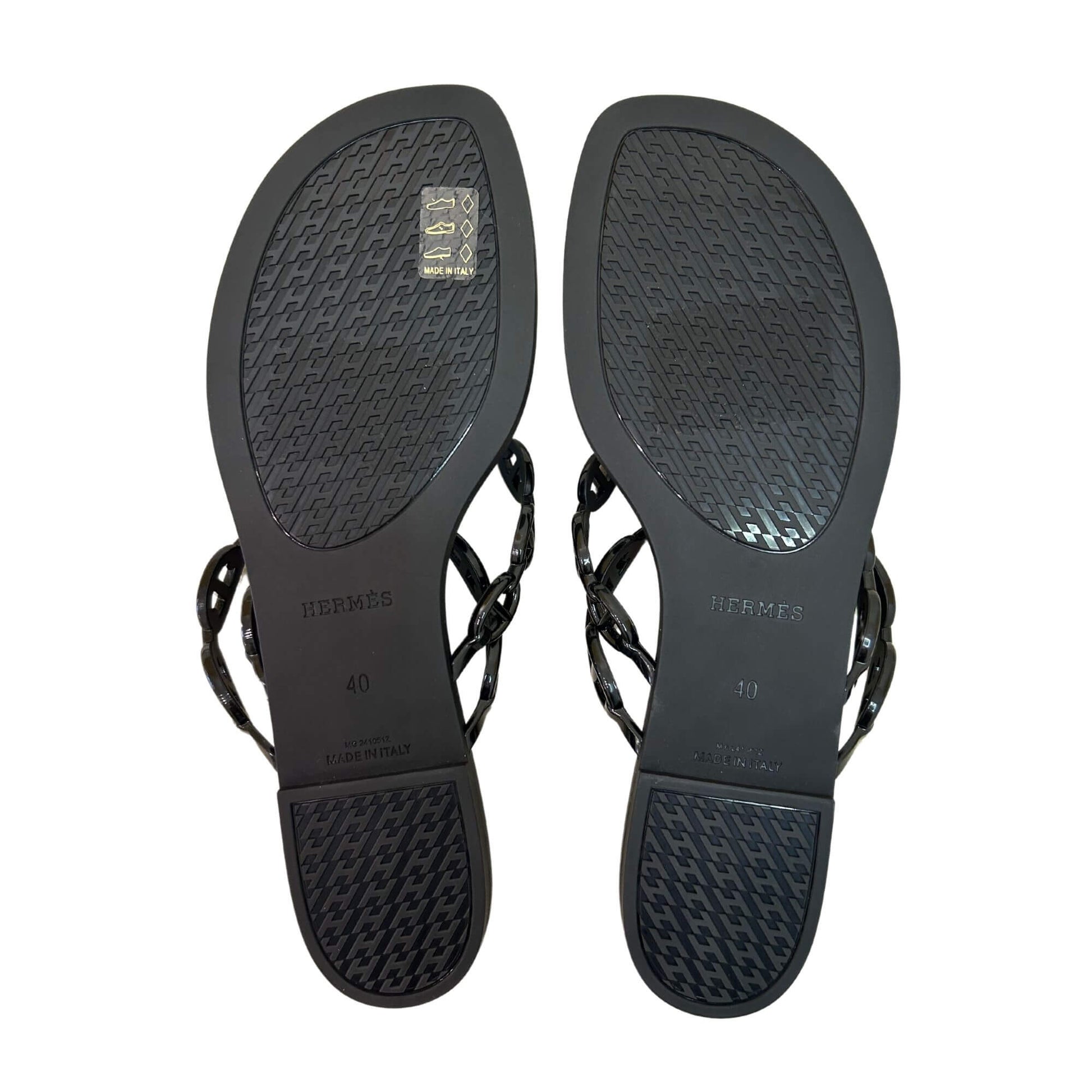 This NEW Hermès Island sandals are perfect to complete any look, made with black rubber and with the iconic Hermès Chaîne d'Ancre motif.
