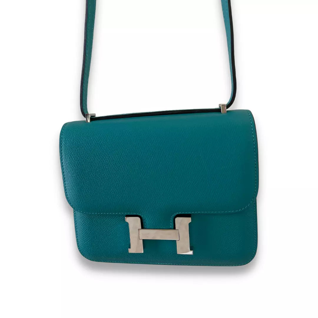 Completely new Hermès Constance 18 Vert Malachite Mini Bag made in Epson Leather and finished with palladium hardware.