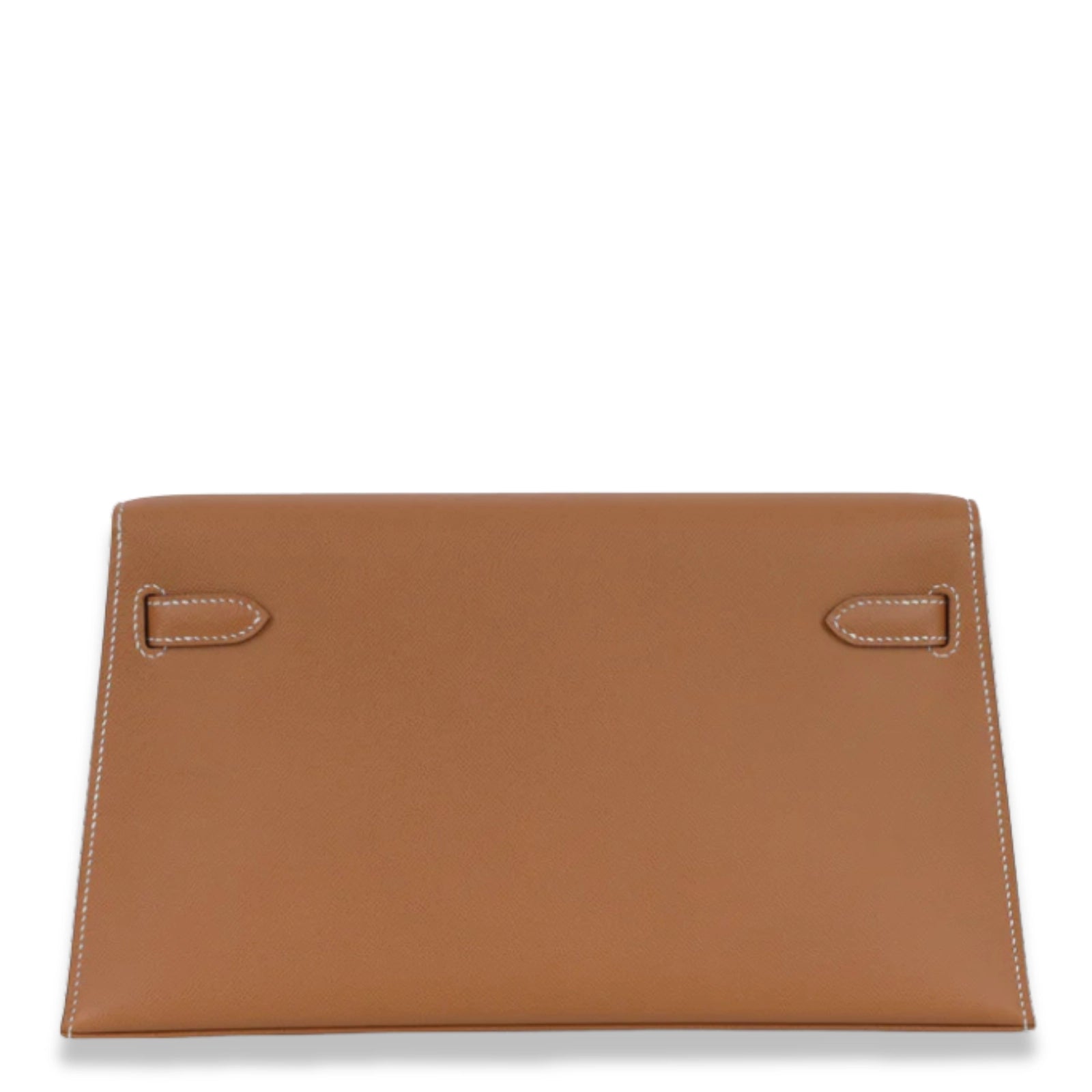 Hermès Kelly Elan handcrafted in Gold Madame Leather and Gold Hardware. Condition is Pristine with plastics on the Hardware.