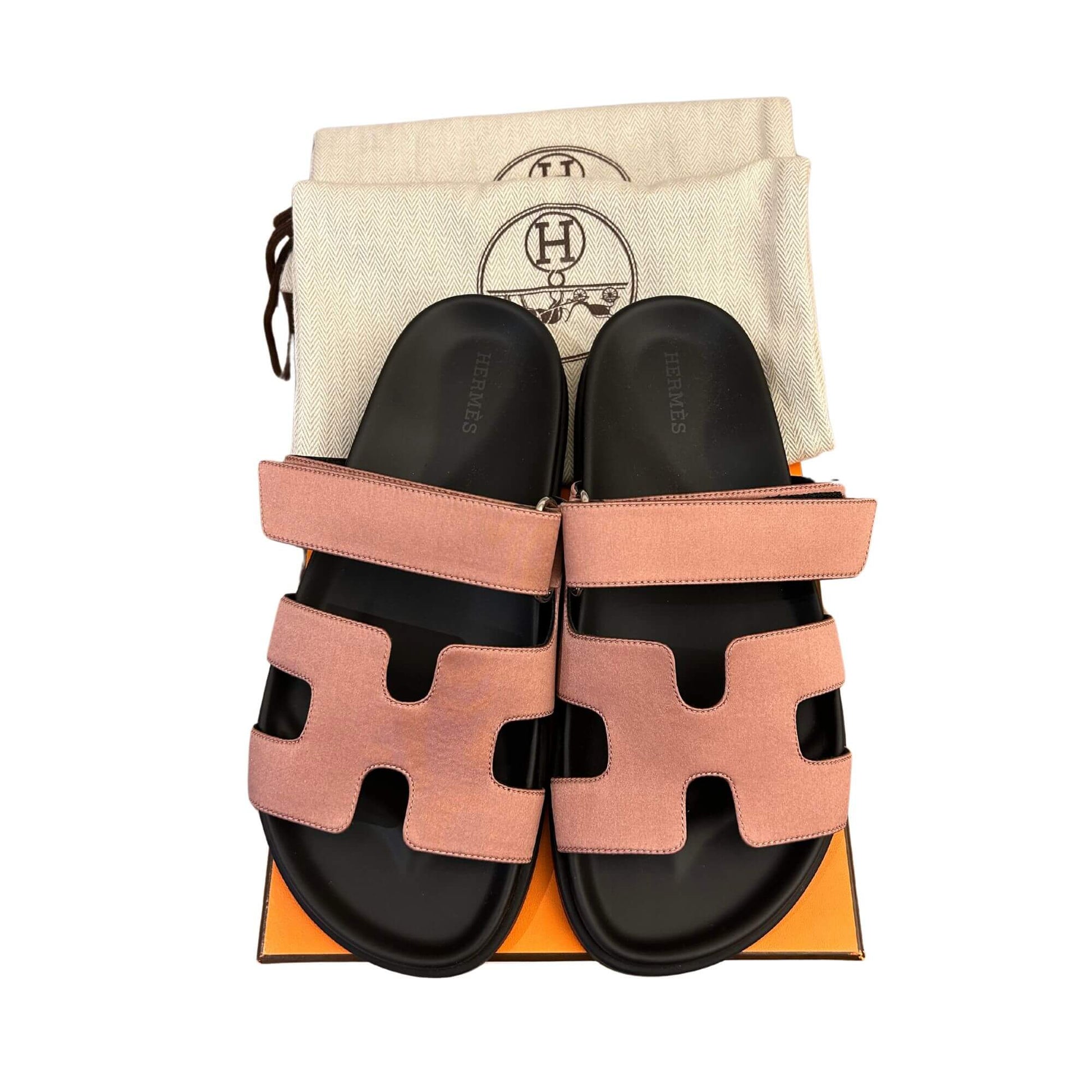 HERMÈS PINK SILK CHYPRE SANDALS