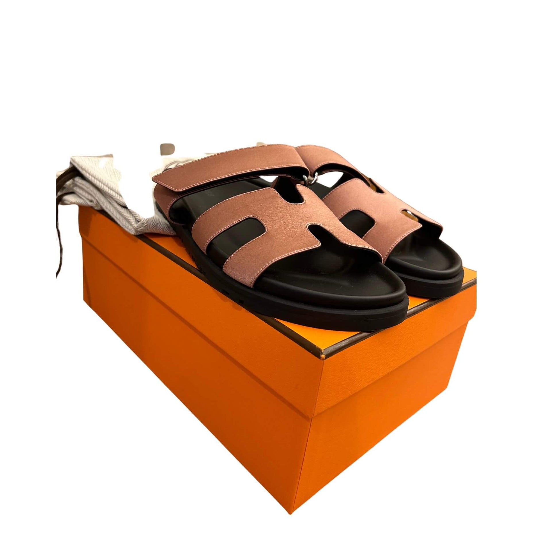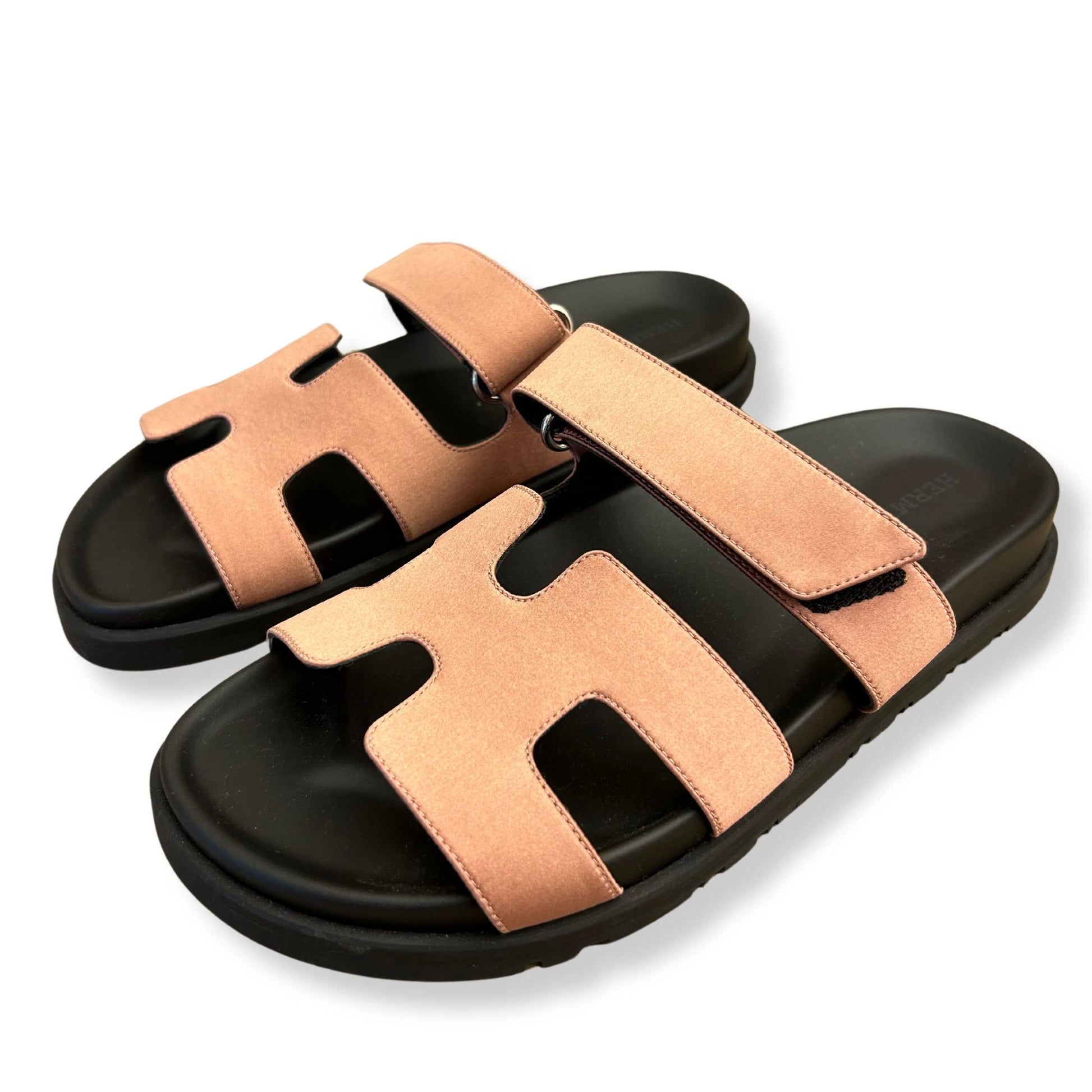 This NEW Hermès Sandals are made out of silk satin in pink. The sole of the shoe is made of rubber and the strap is adjustable, perfect to adapt to anyone.