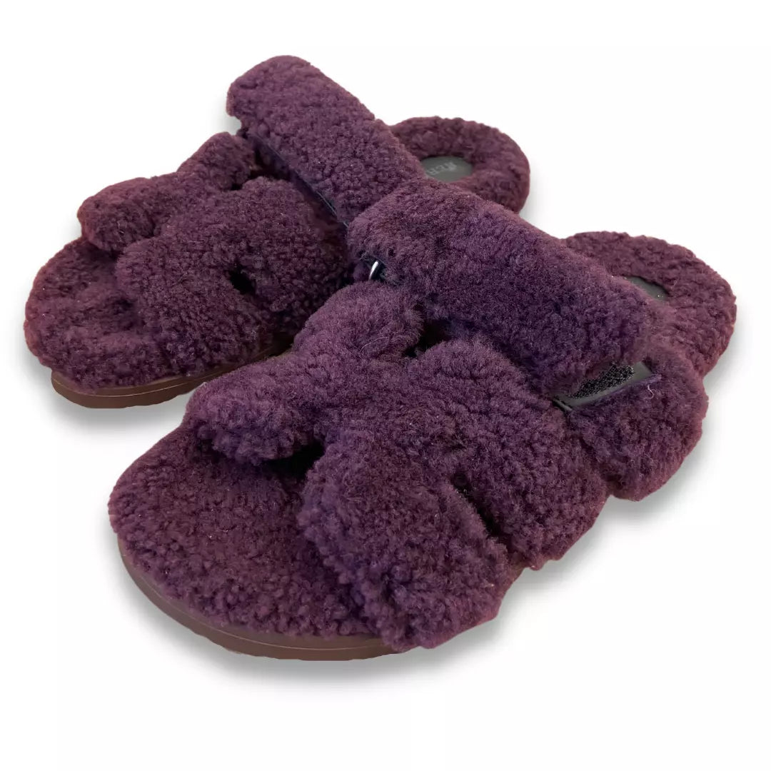 New Hermès Calfskin Leather & Violet Foncé Wool Chypre Sandals with iconic "H" cut-out.