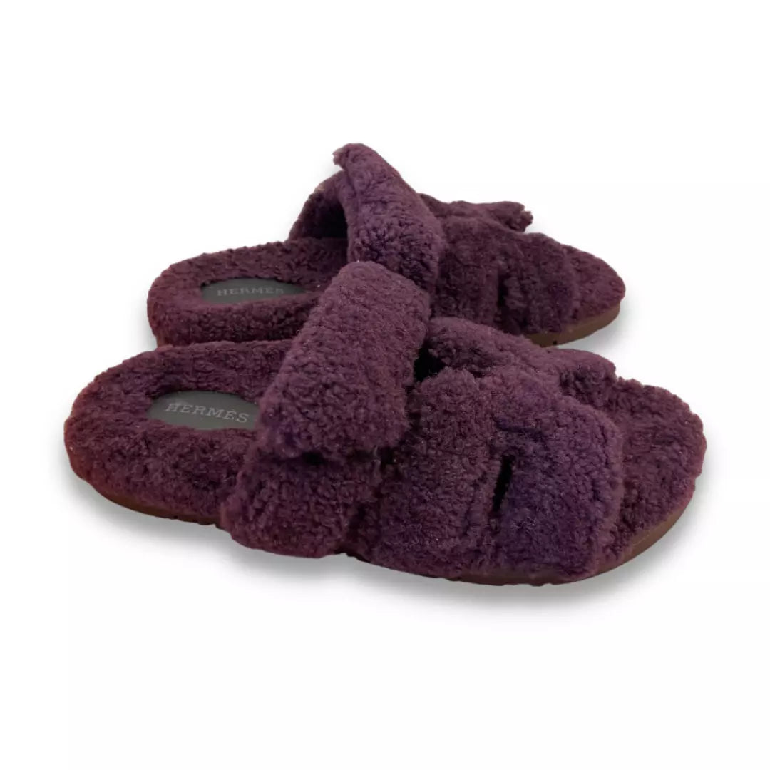 HERMÈS VIOLET WOOL CHYPRE SANDALS
