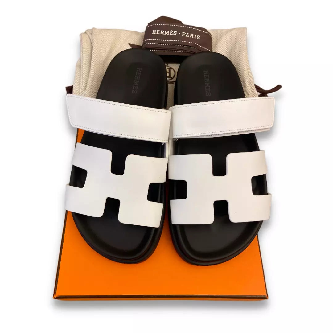 HERMÈS WHITE LEATHER CHYPRE SANDALS