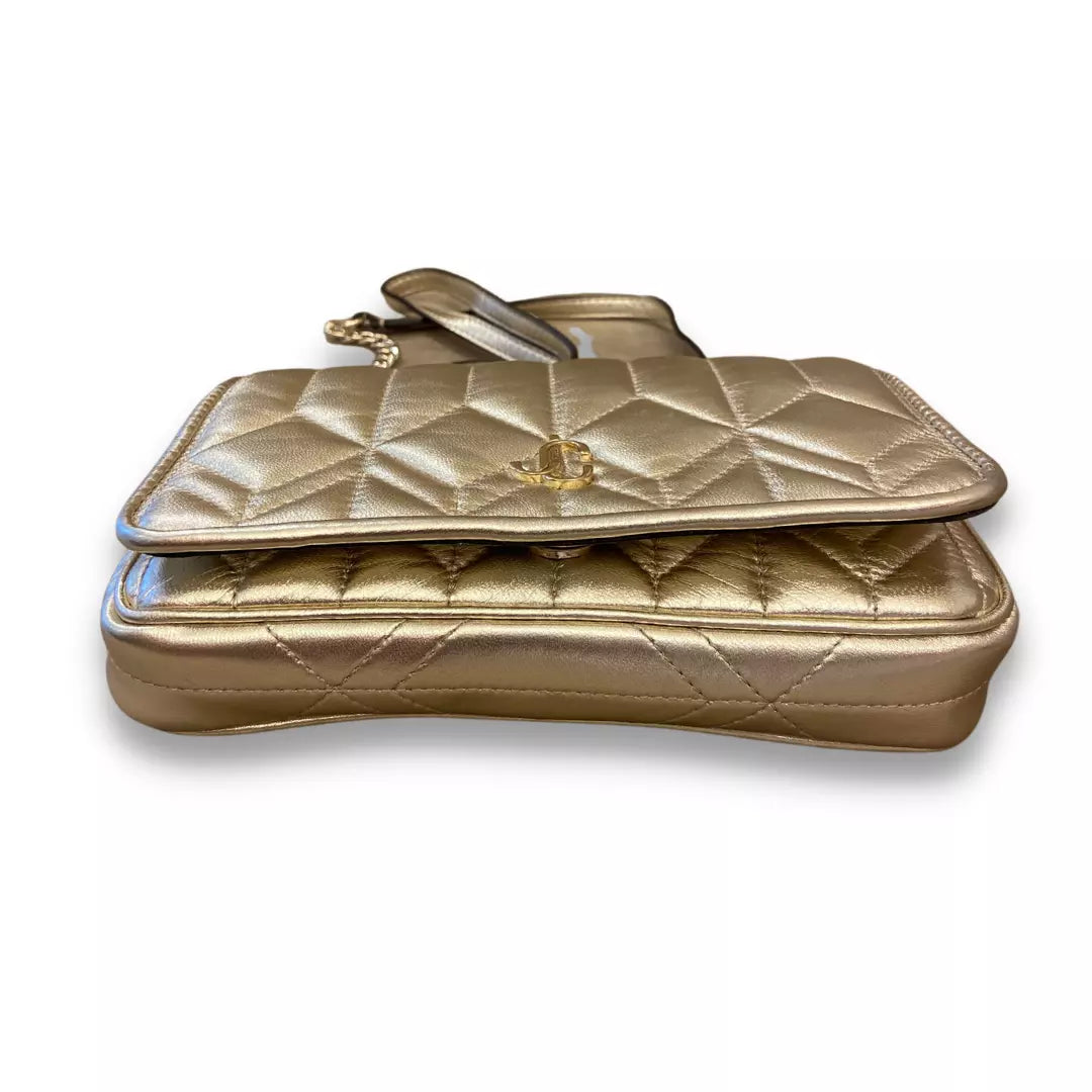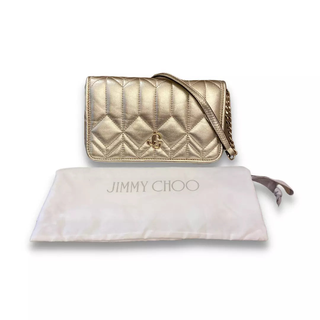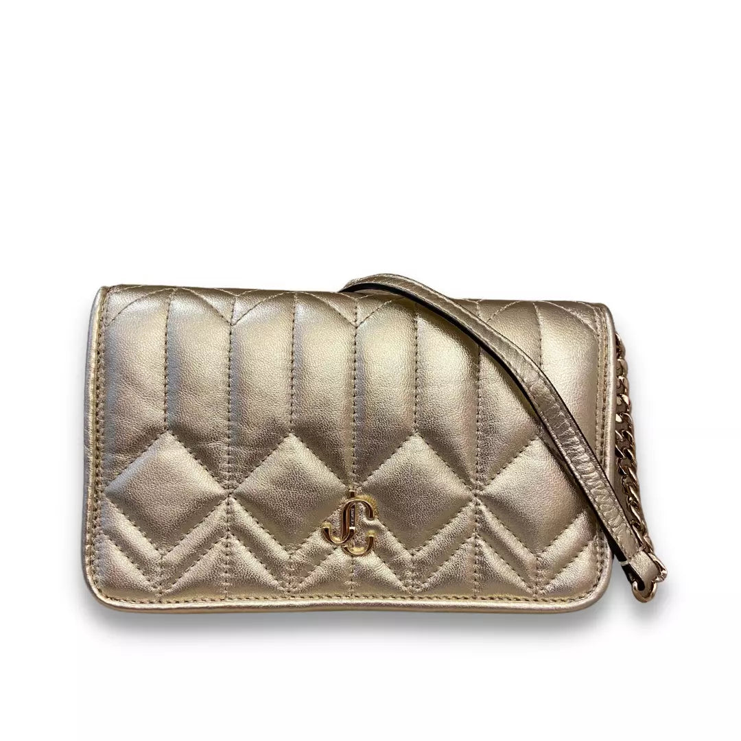 JIMMY CHOO GOLD AVENUE WALLET ON CHAIN BAG