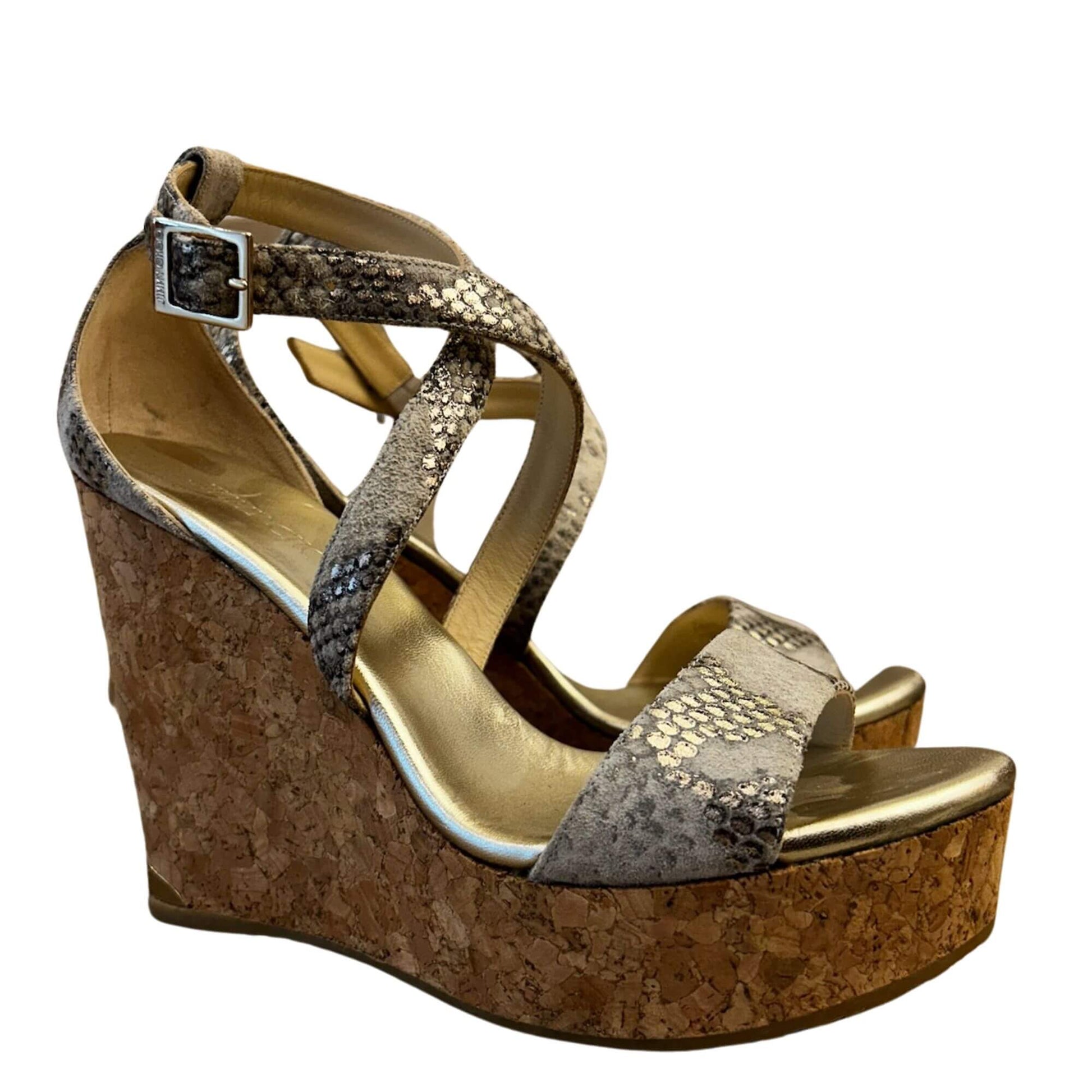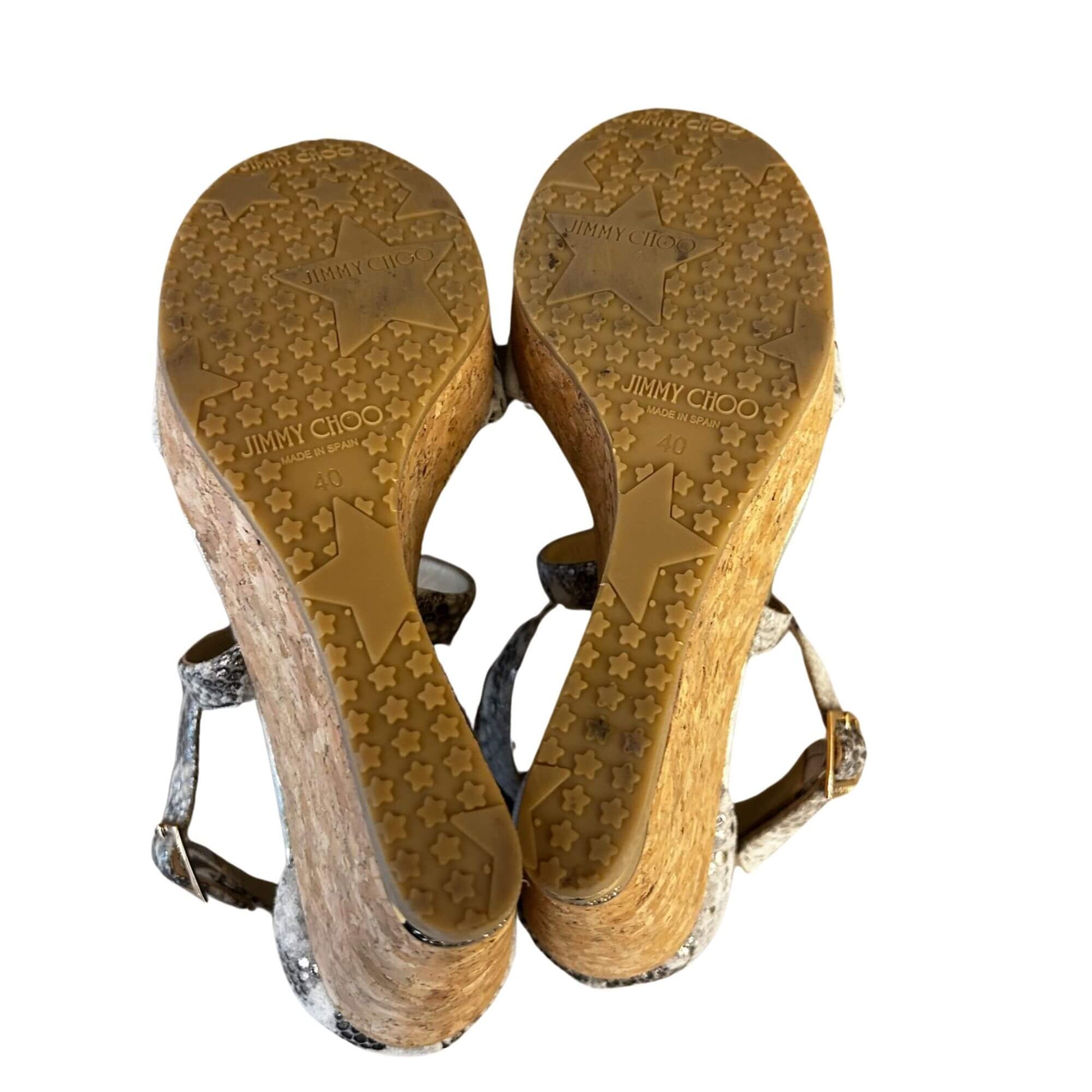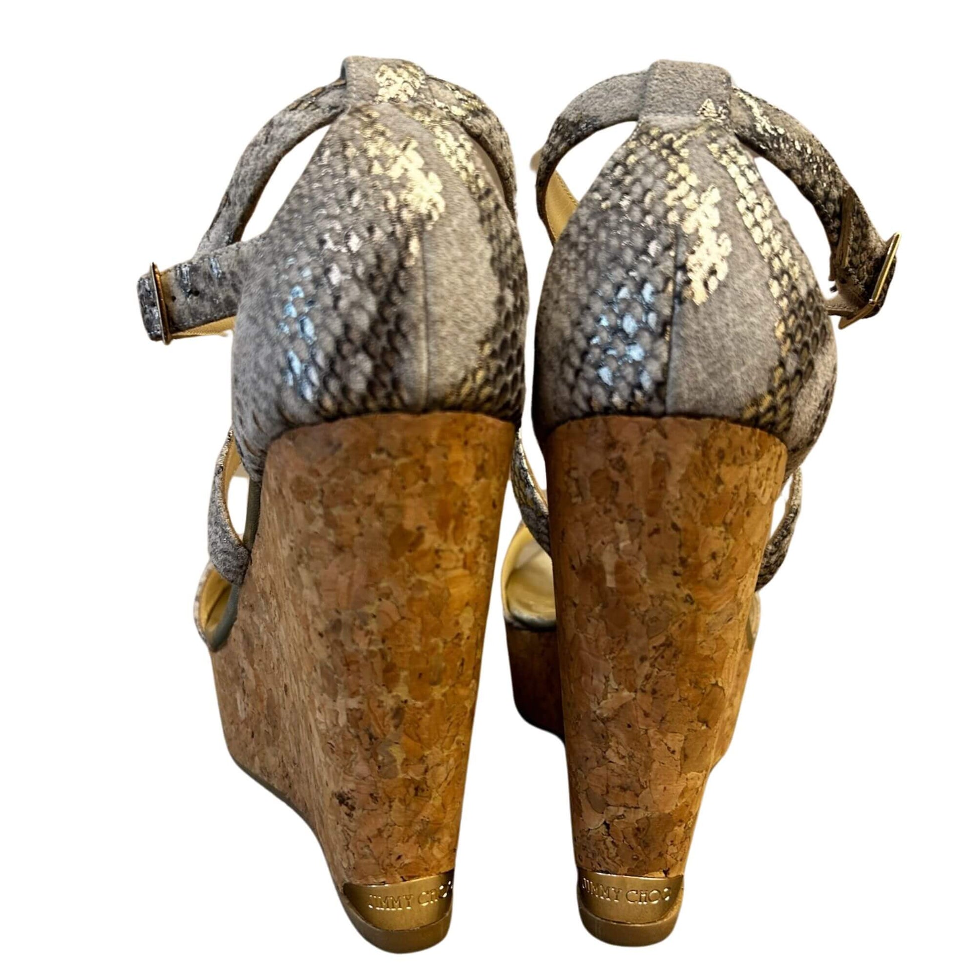 JIMMY CHOO METALLIC SNAKE PRINTED WEDGES