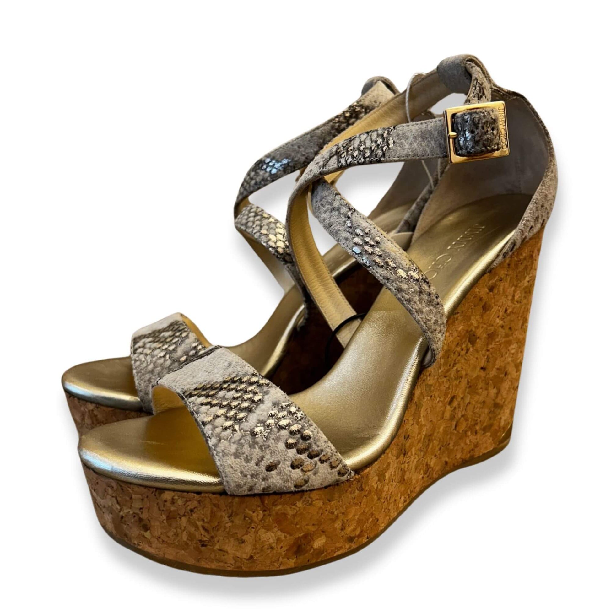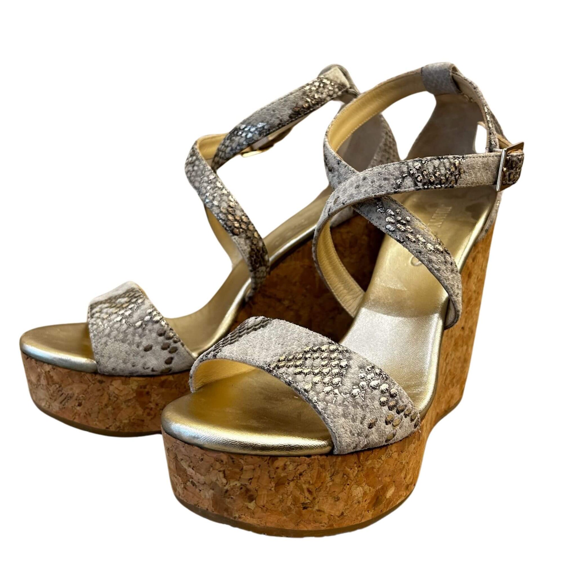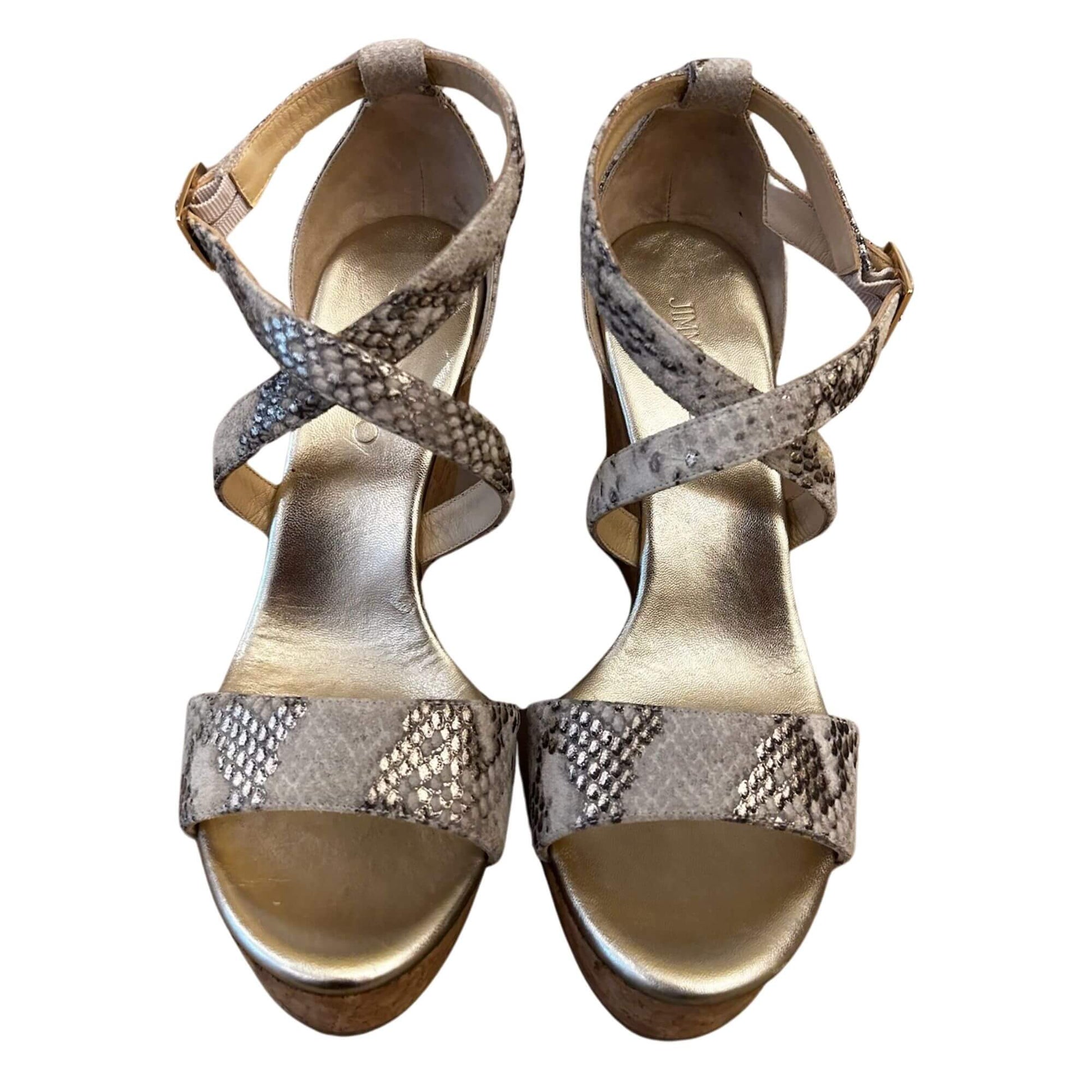 JIMMY CHOO METALLIC SNAKE PRINTED WEDGES