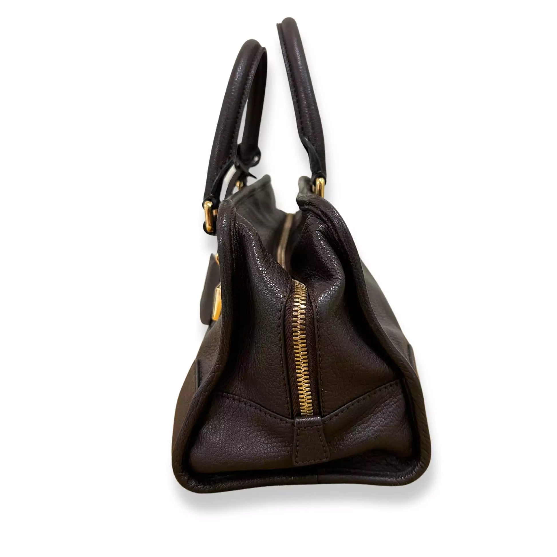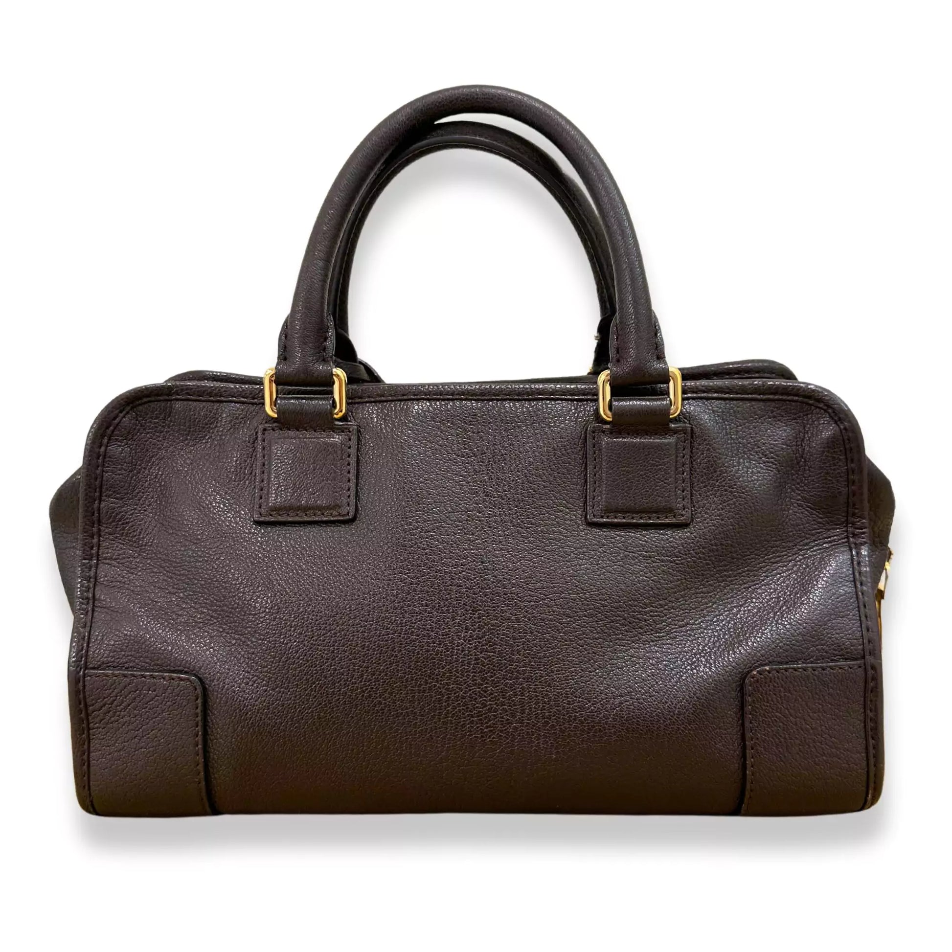 A vintage Loewe brown leather bag with a short handle and a golden padlock likely exudes a timeless and classic charm. The brand Loewe is known for its high-quality leather goods, and the combination of brown leather with a golden padlock adds a touch of sophistication to this vintage piece, making it a stylish accessory for various occasions.
