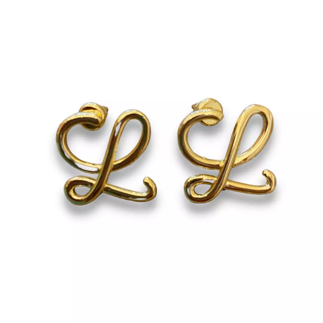 Pre-loved Loewe Gold Metal "L" Earrings, crafted in gold metal. This is the representation of the new Loewe Anagram.