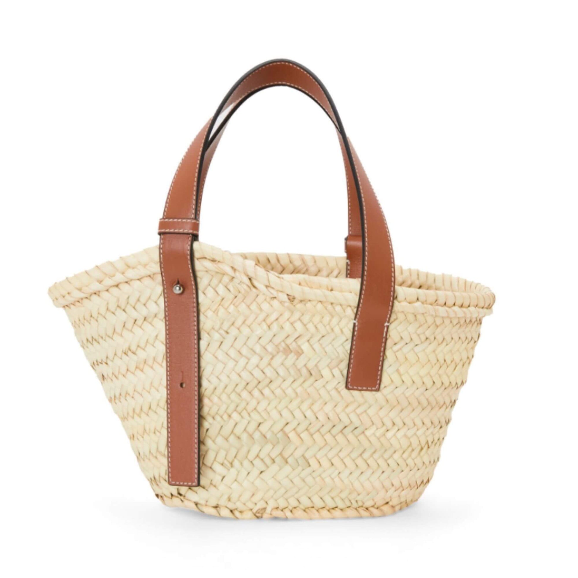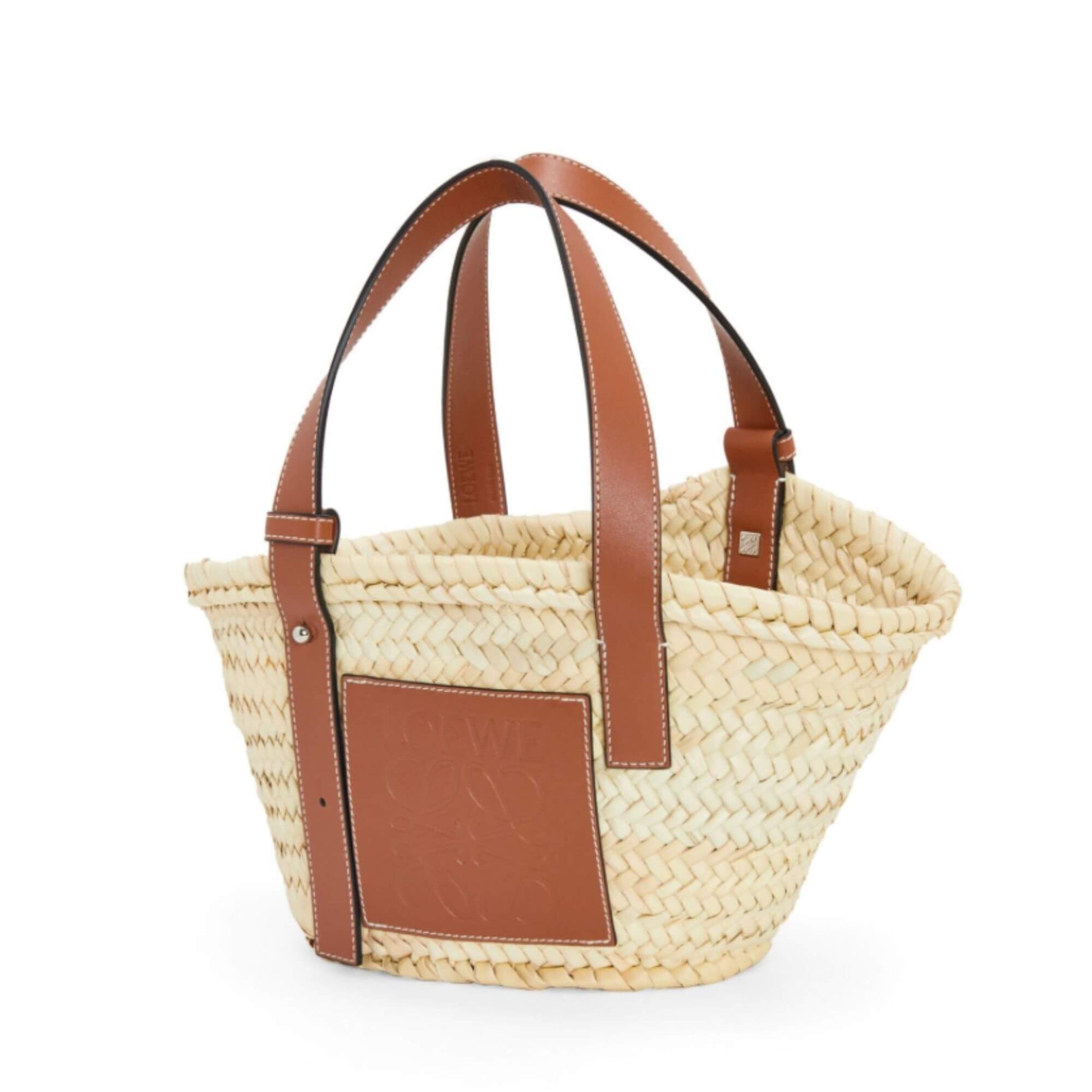 LOEWE SMALL BASKET BAG IN PALM LEAF AND CALFSKIN