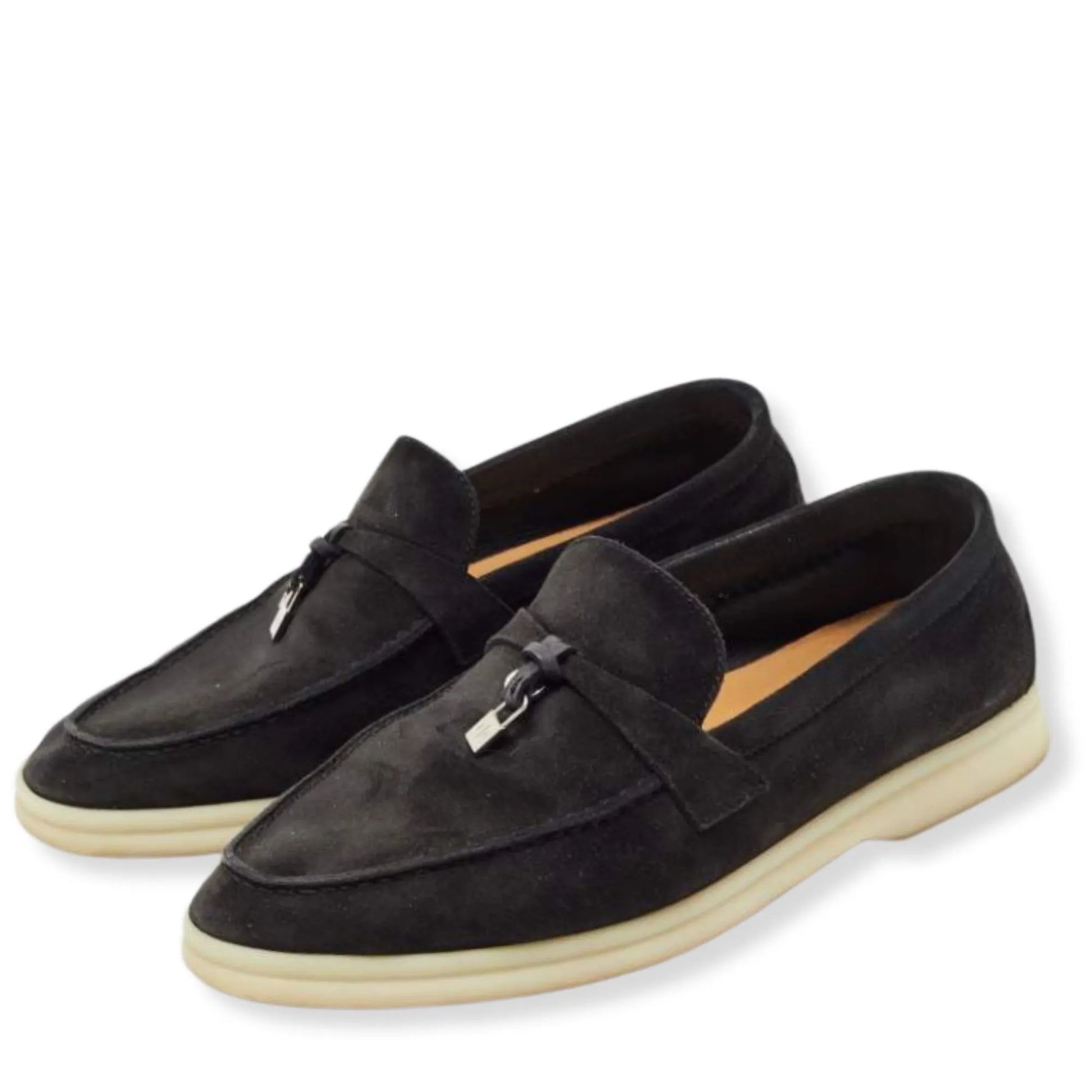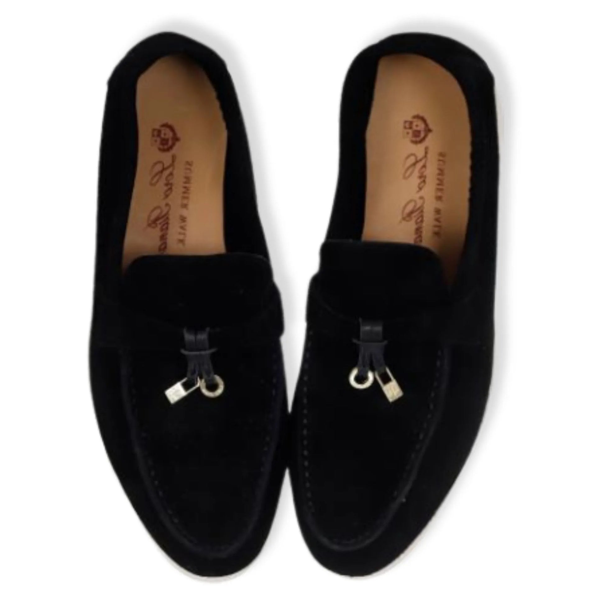 LORO PIANA SUMMER CHARMS WALK BLACK LOAFERS