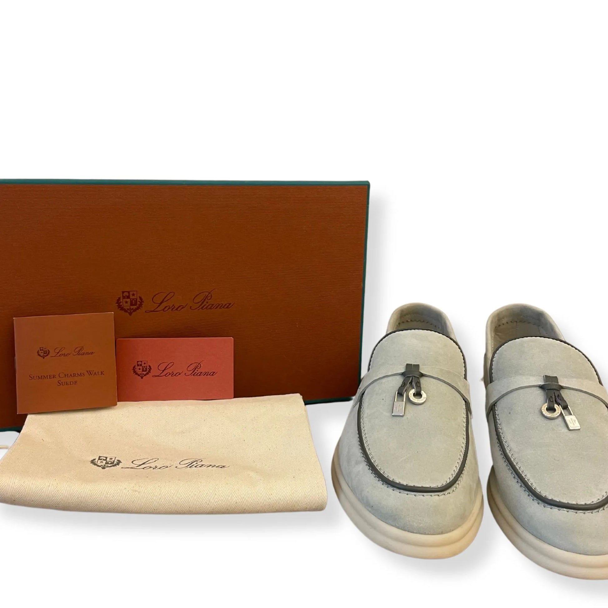 Comfortable, sporty loafers made from soft suede. They are enhanced with rubber soles — a common feature of all Loro Piana sportswear shoes. The front saddles are embellished with mini My Charms. Perfect for summers spent sailing, at the beach or in the city.