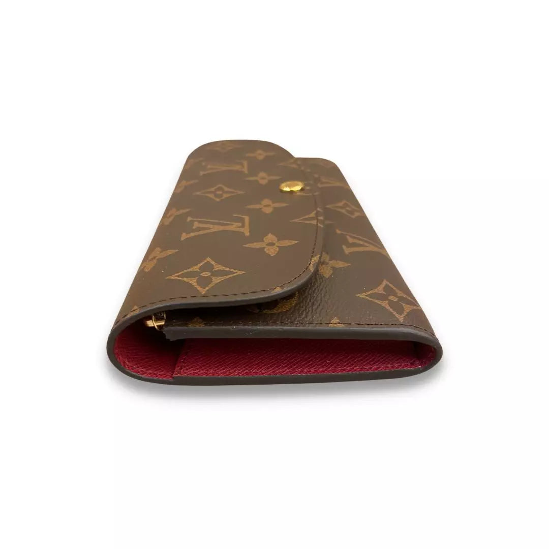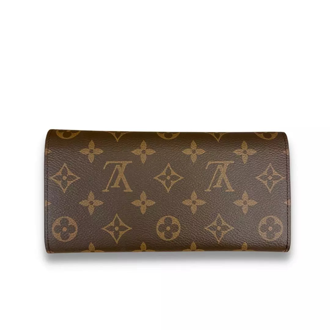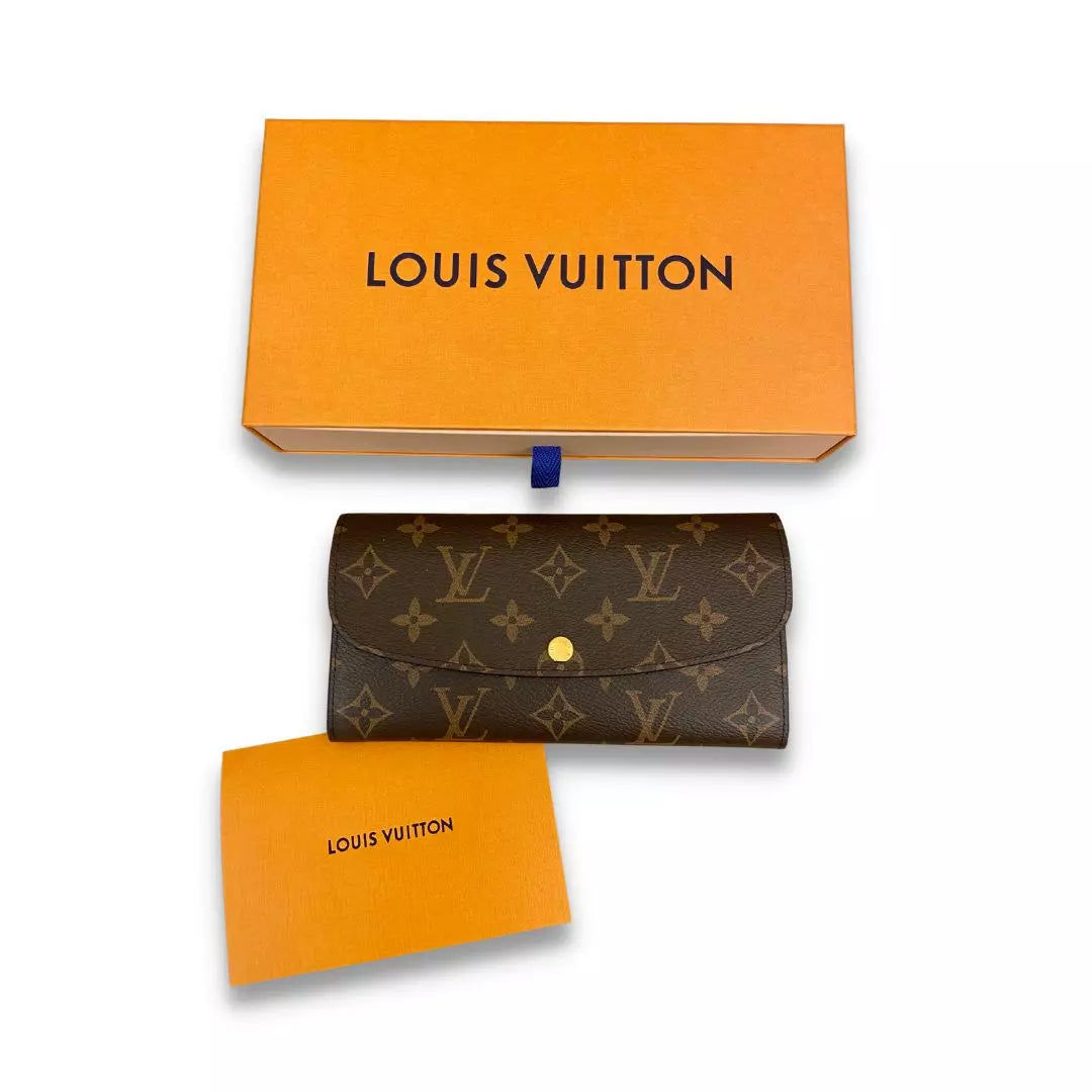 Louis Vuitton Brown Leather Emilie Wallet in coated canvas. It boasts 4 credit cards slots, 1 zipped coin pocket, 2 large inside flat pockets & 1 large gusseted compartment.