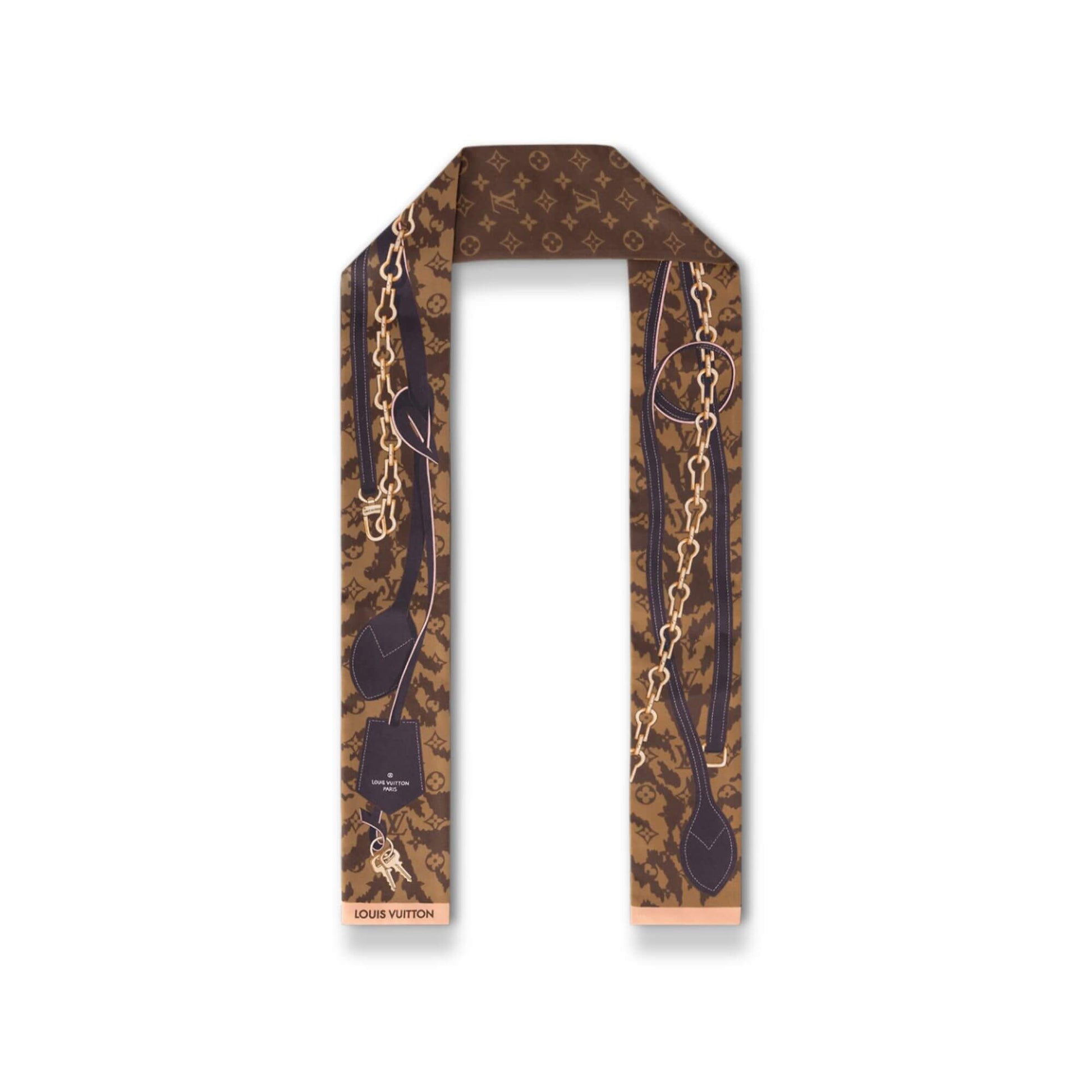 This NEW Louis Vuitton Bandana is made out of silk in different brown tones. The drawings represent the Maison's iconic All That Straps design. It can be worn as a scarf, in your hair, in your bag... It's perfect to complete any look.