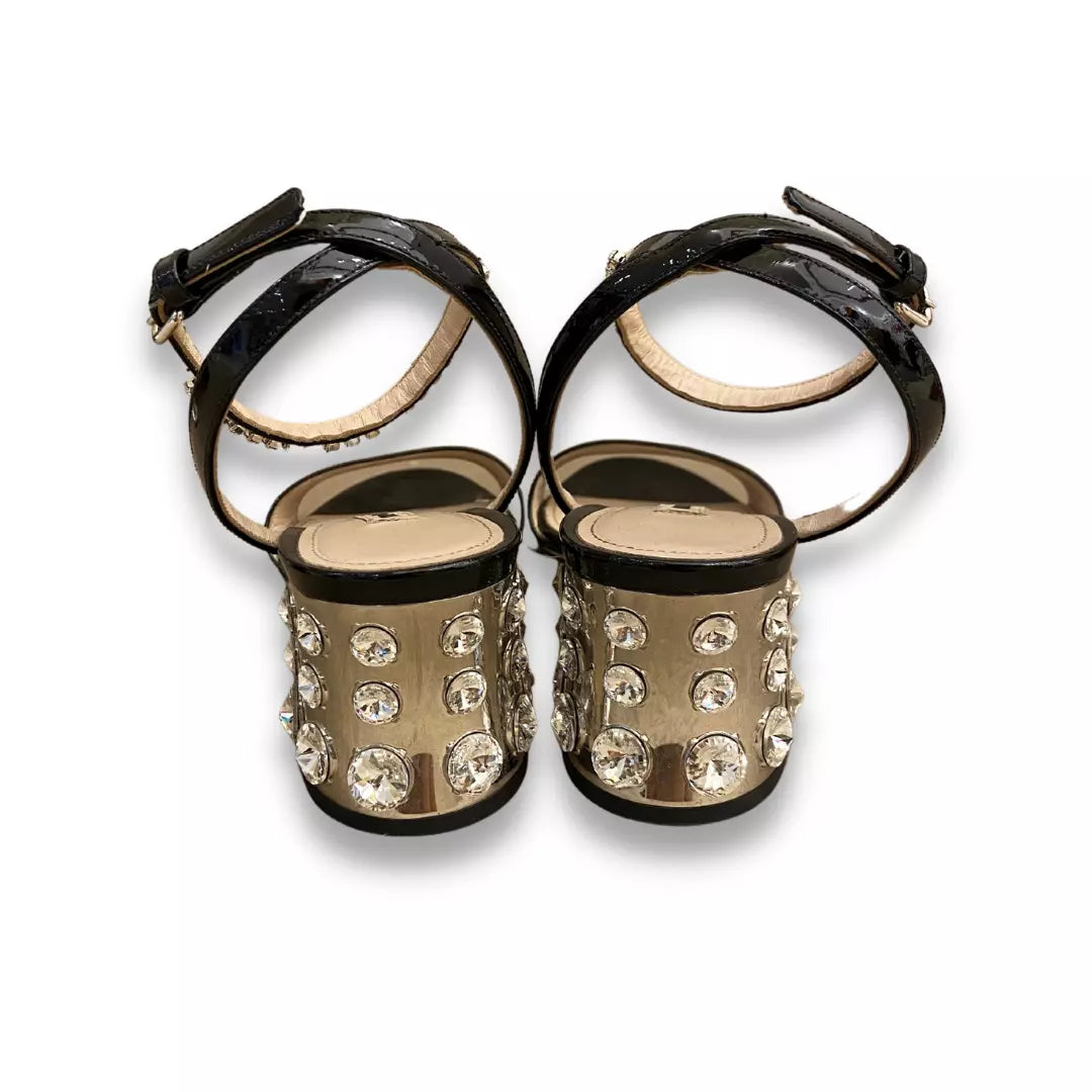 MIU MIU BLACK LEATHER CRYSTAL BLOCK SANDALS