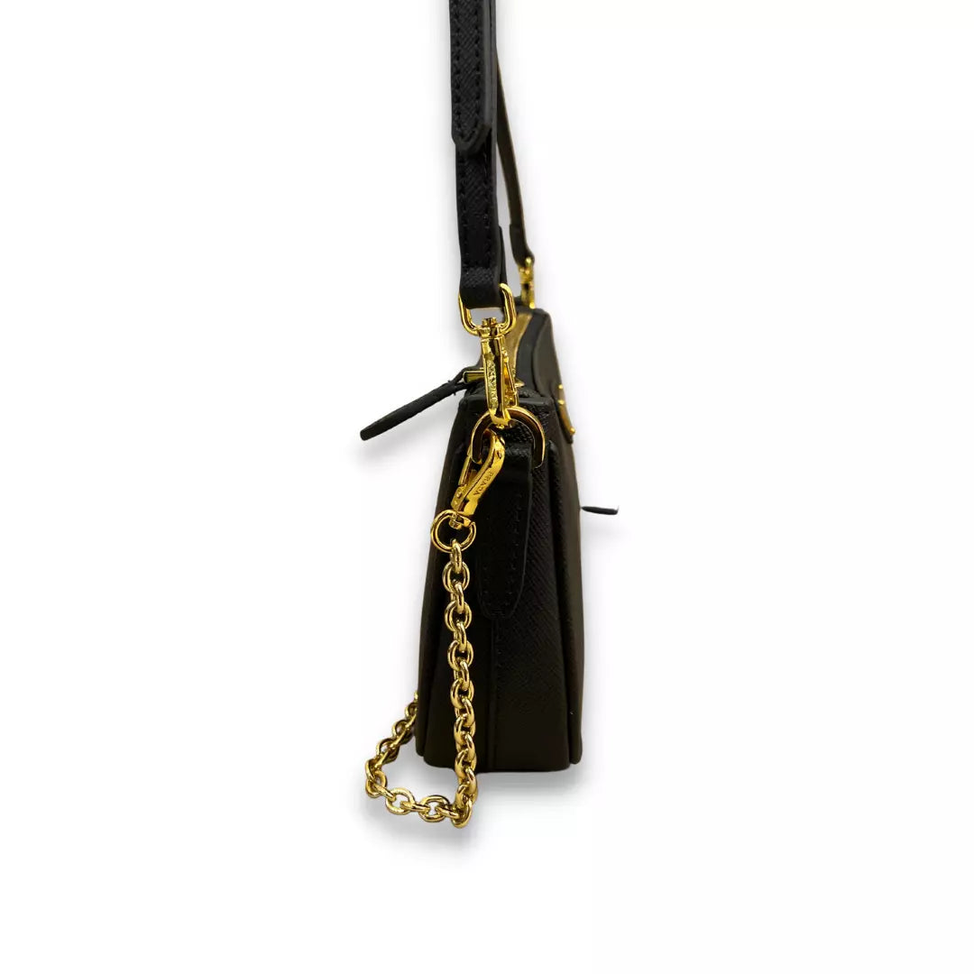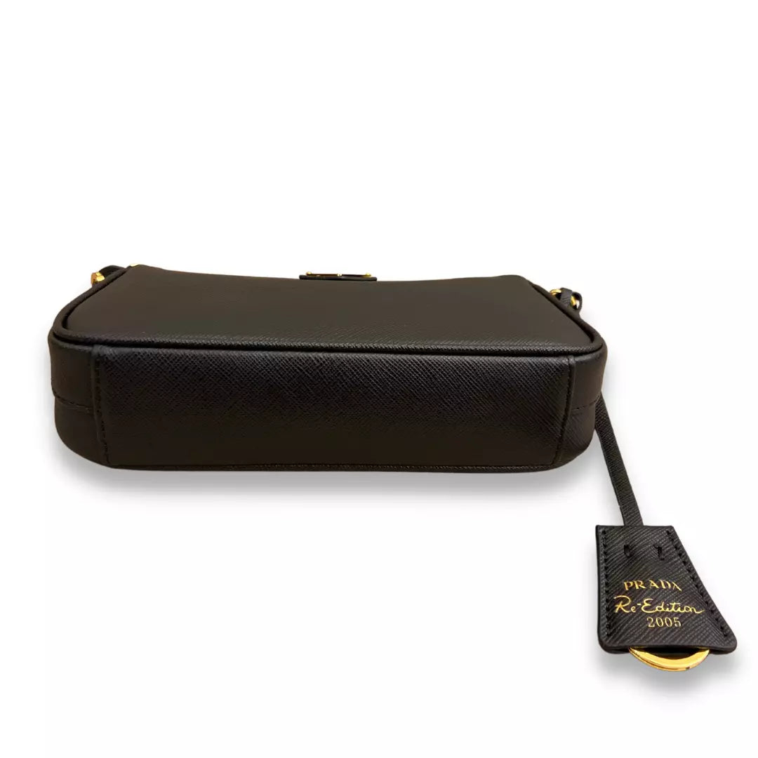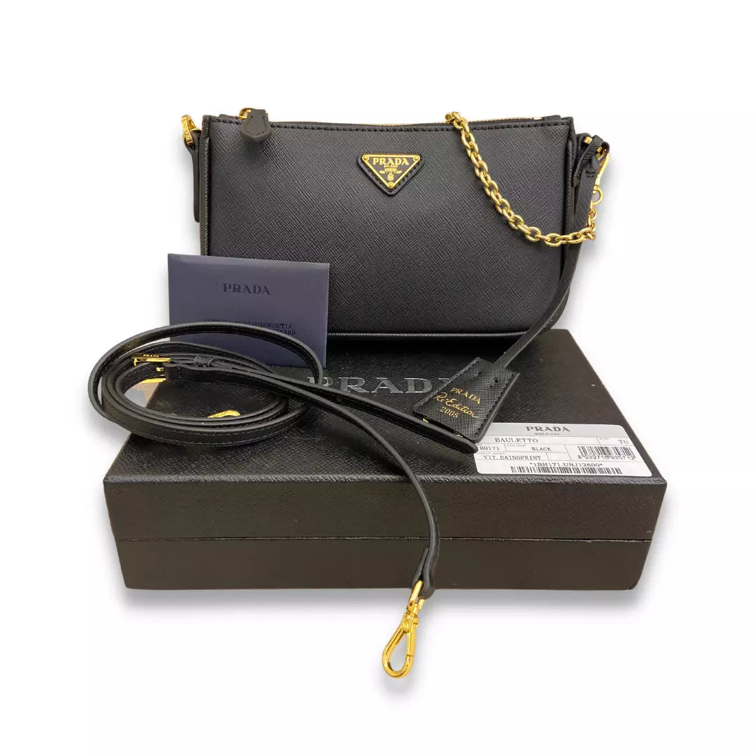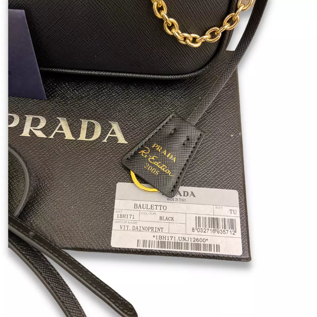 Completely new Prada 1BH171 Black Re-Edition 2000 shoulder bag in Saffiano leather with name tag and keychain. It comes with a detachable adjustable Saffiano leather shoulder strap.