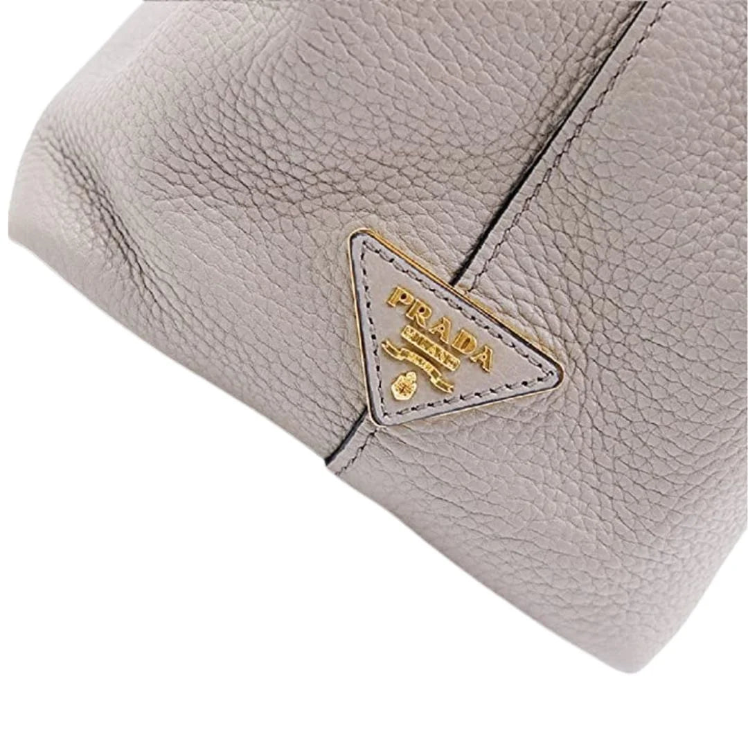 Prada GREY VITELLO PHOENIX LEATHER LOGO HOBO TOTE BAG
