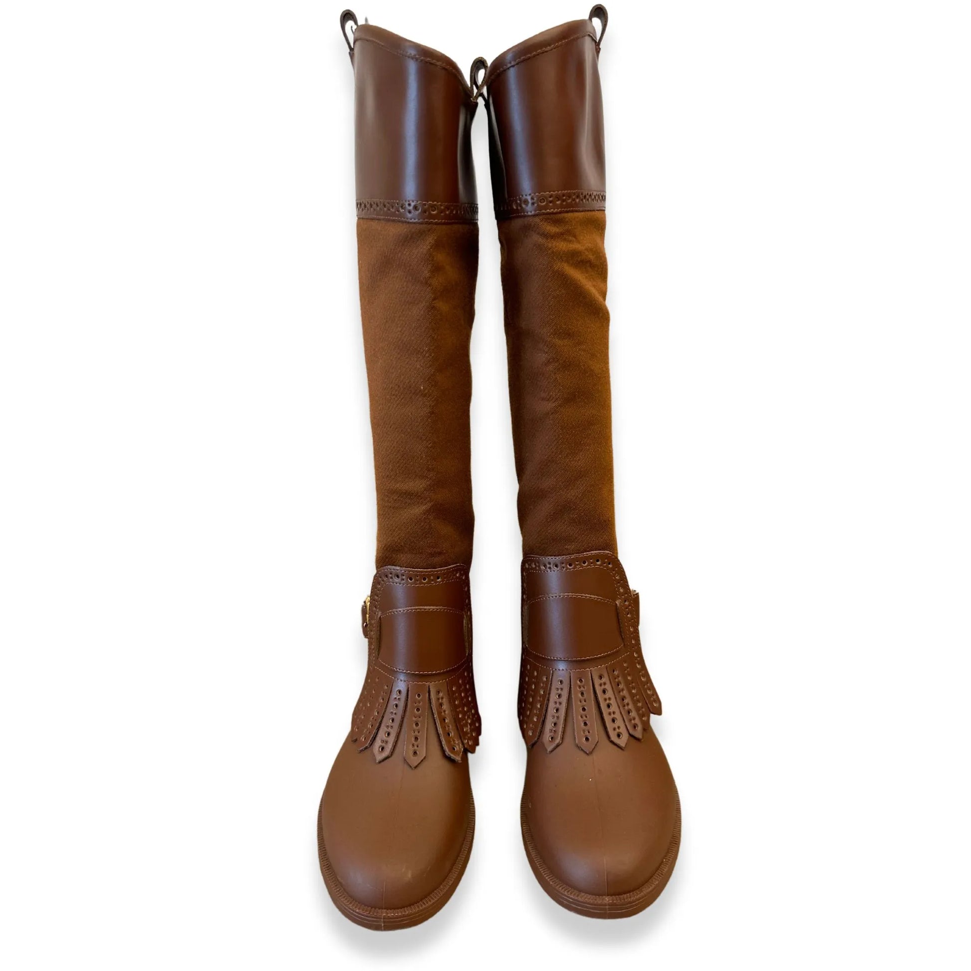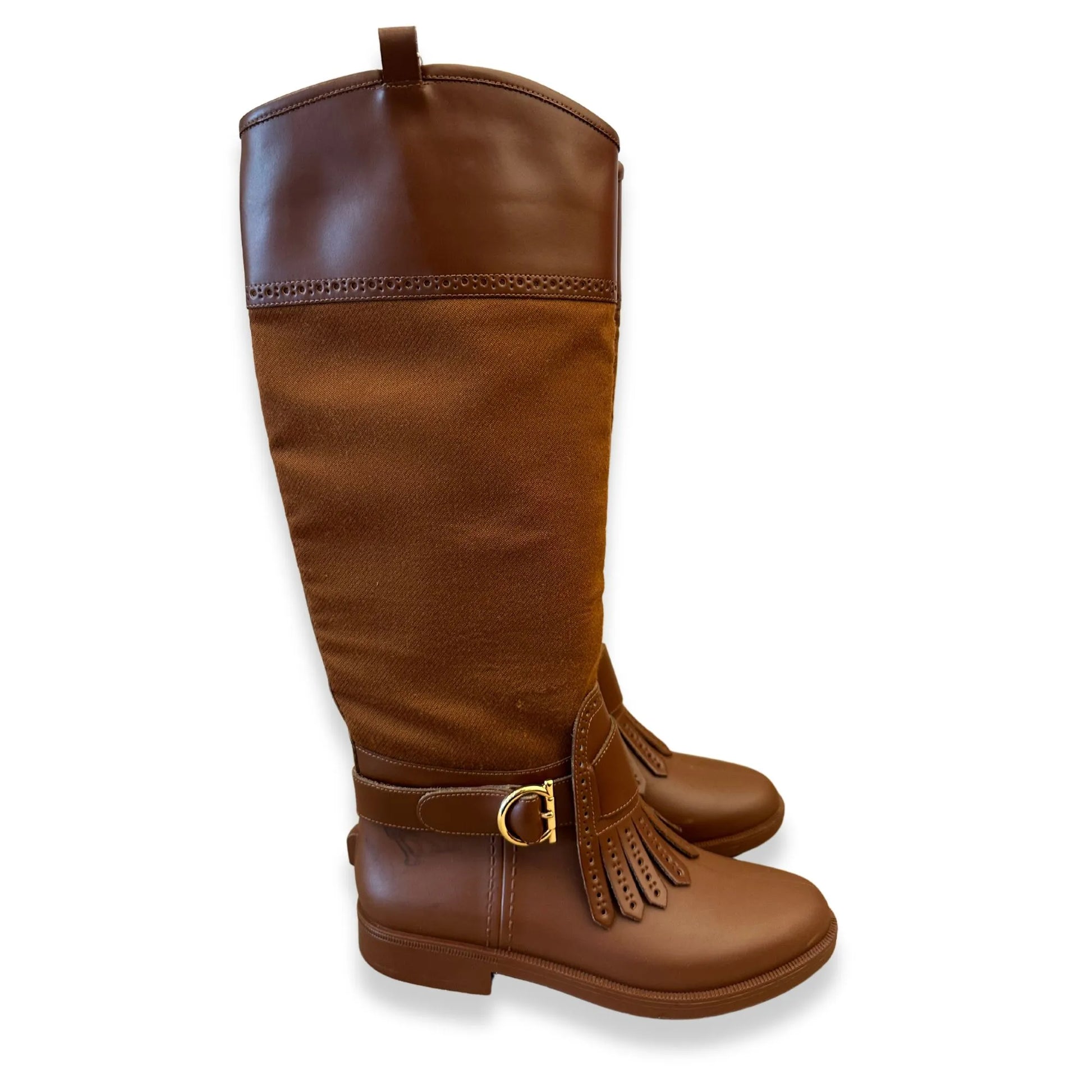 These Pre-loved Salvatore Ferragamo Boots in Brown Leather & Gold details, are in new condition.