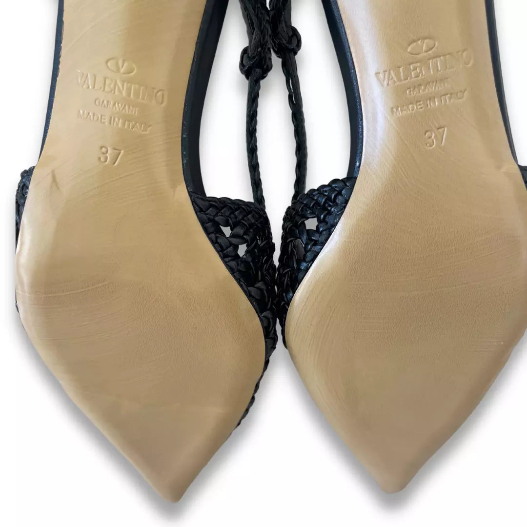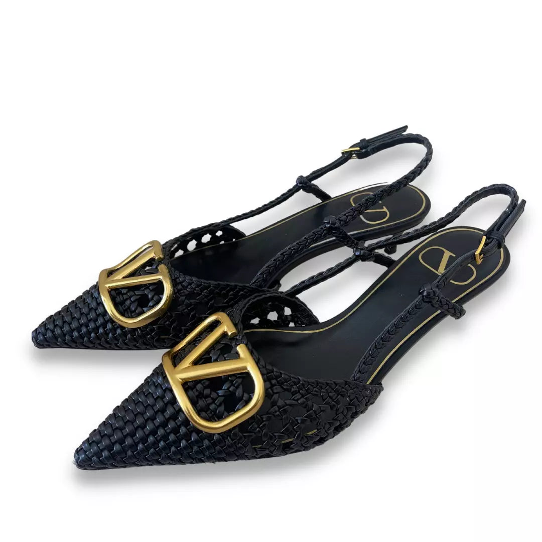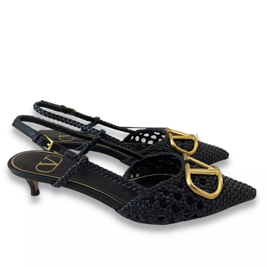 Pre-Loved Valentino Black calfskin slingback pump with VLogo Signature embellishment. They have a 4cm heel and are in Very Good condition.